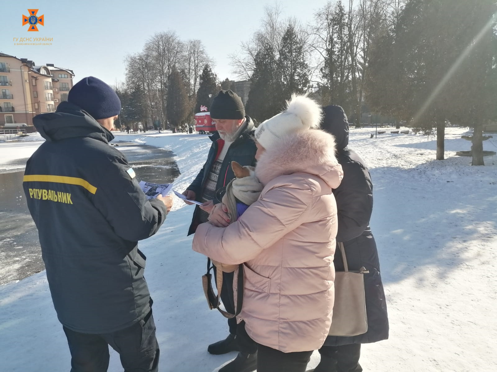 Працівники Служби порятунку поспілкувались з громадянами поблизу місцевих водойм та закликали не виходити на тонку кригу, задля власної безпеки.