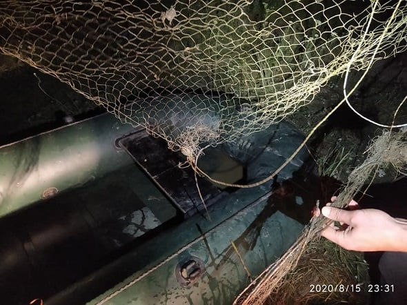 Знайшли 5-ти метрову ліскову сітку (вічко 35 мм) та 2 сіткоснастеві знаряддя – «екрани», довжиною 1 м. Риби та інших біоресурсів у вилучених сіткоснастевих знаряддях лову не виявили.