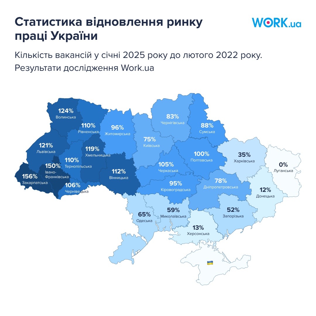 Разом з тим, у перший місяць 2025 року роботодавці розмістили 94 985 вакансій, що на 7% пропозицій роботи більше, ніж було в грудні.