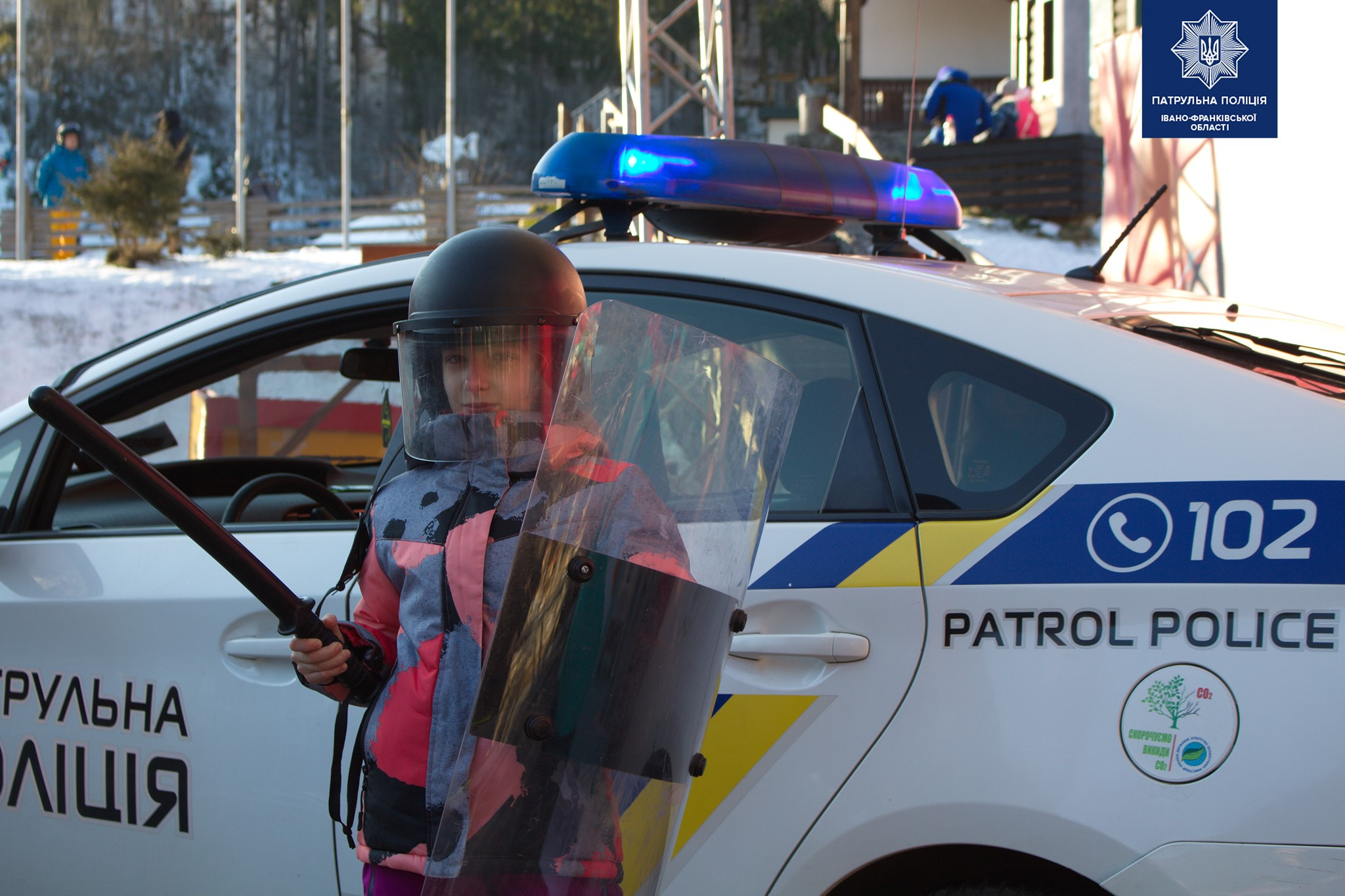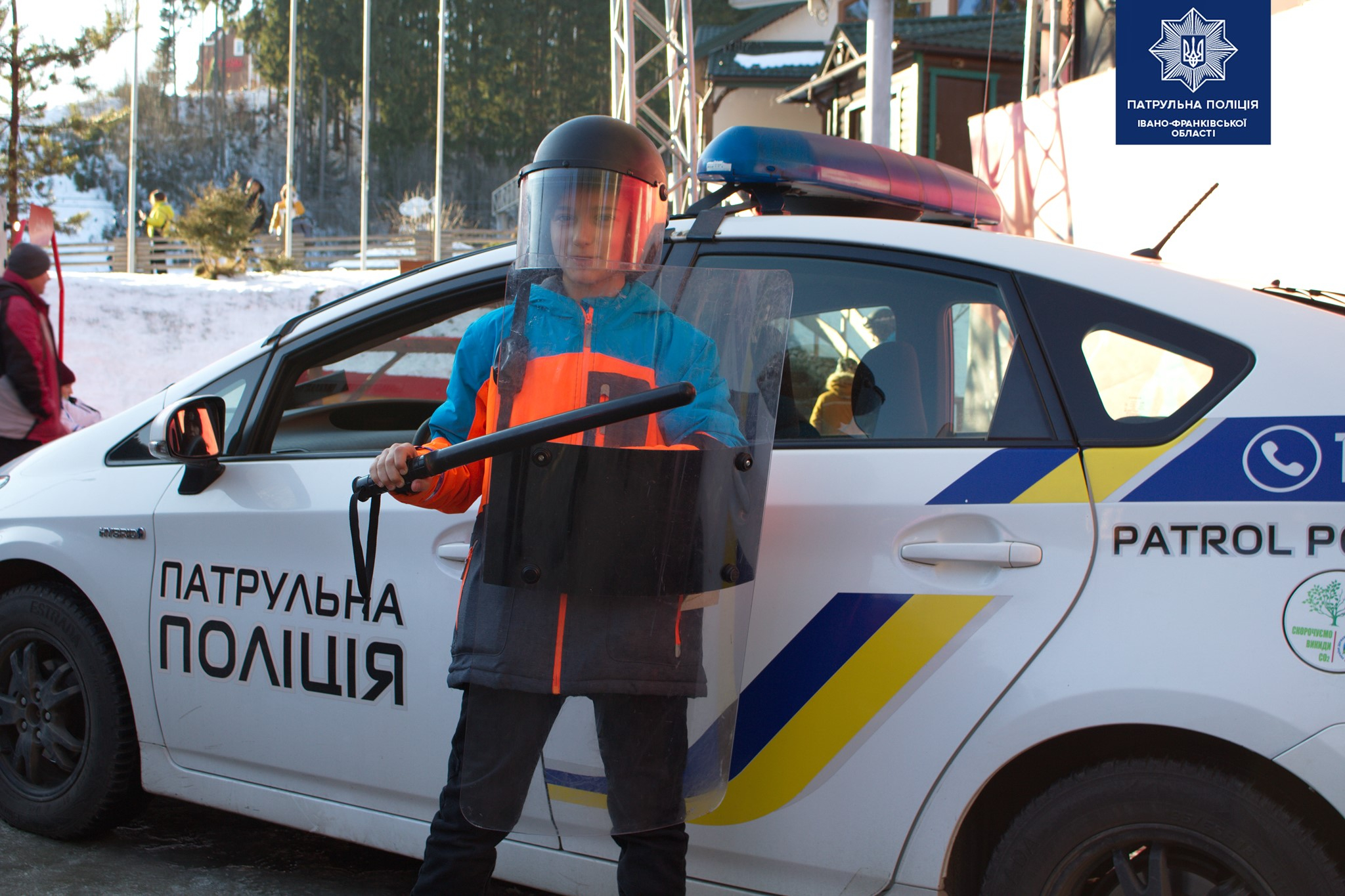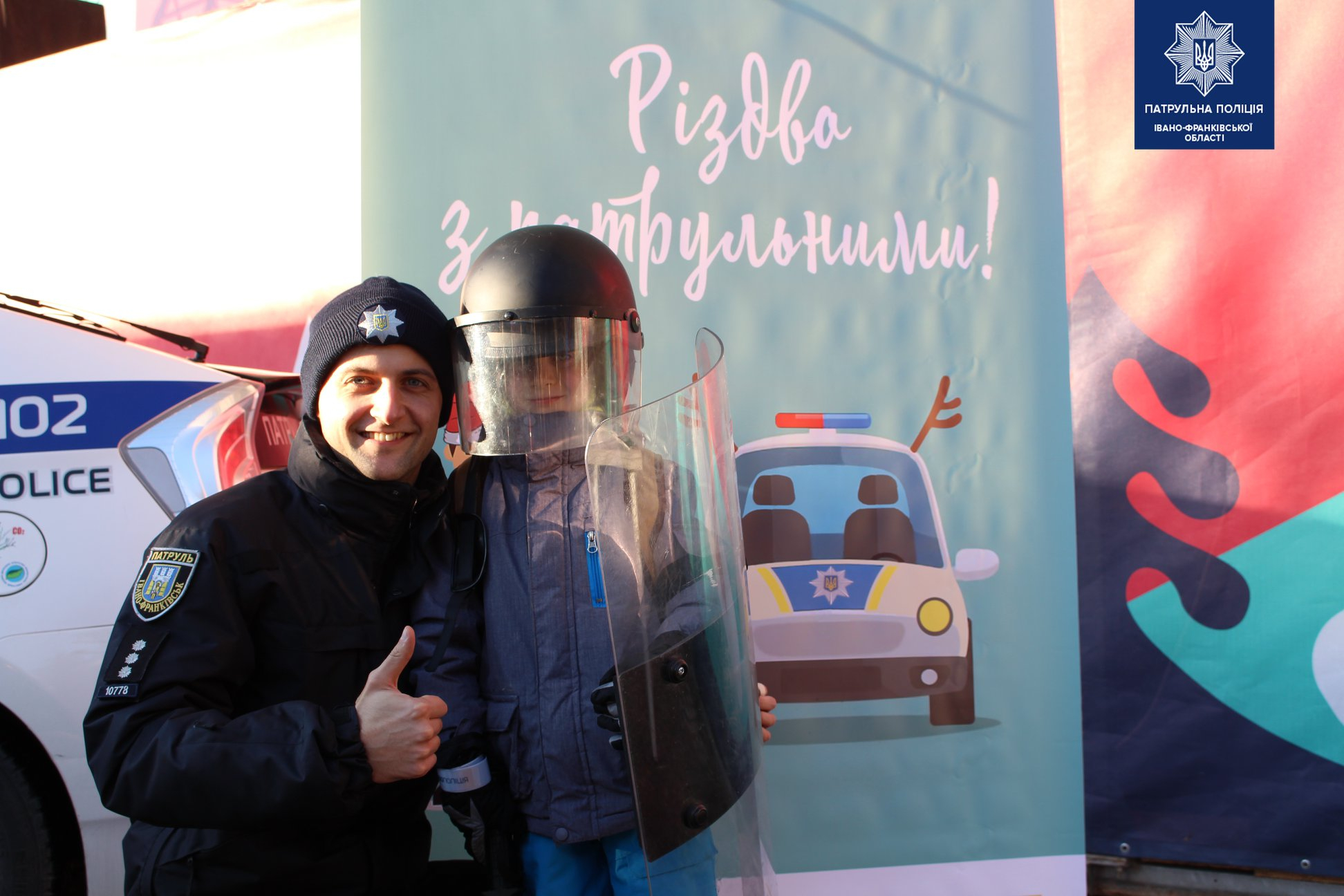 Діти гукали в гучномовець, приміряли бронежилет і включали проблискові маячки зі звуковими сигналами, тож навколо було святково, гамірно та яскраво.