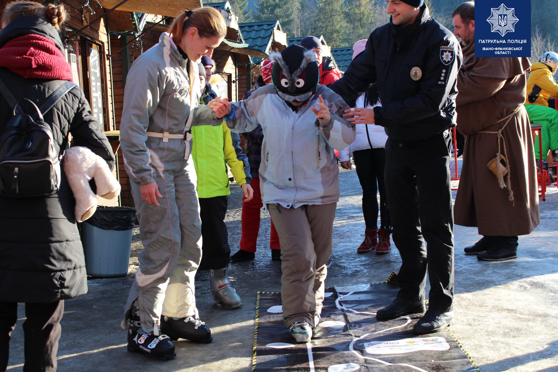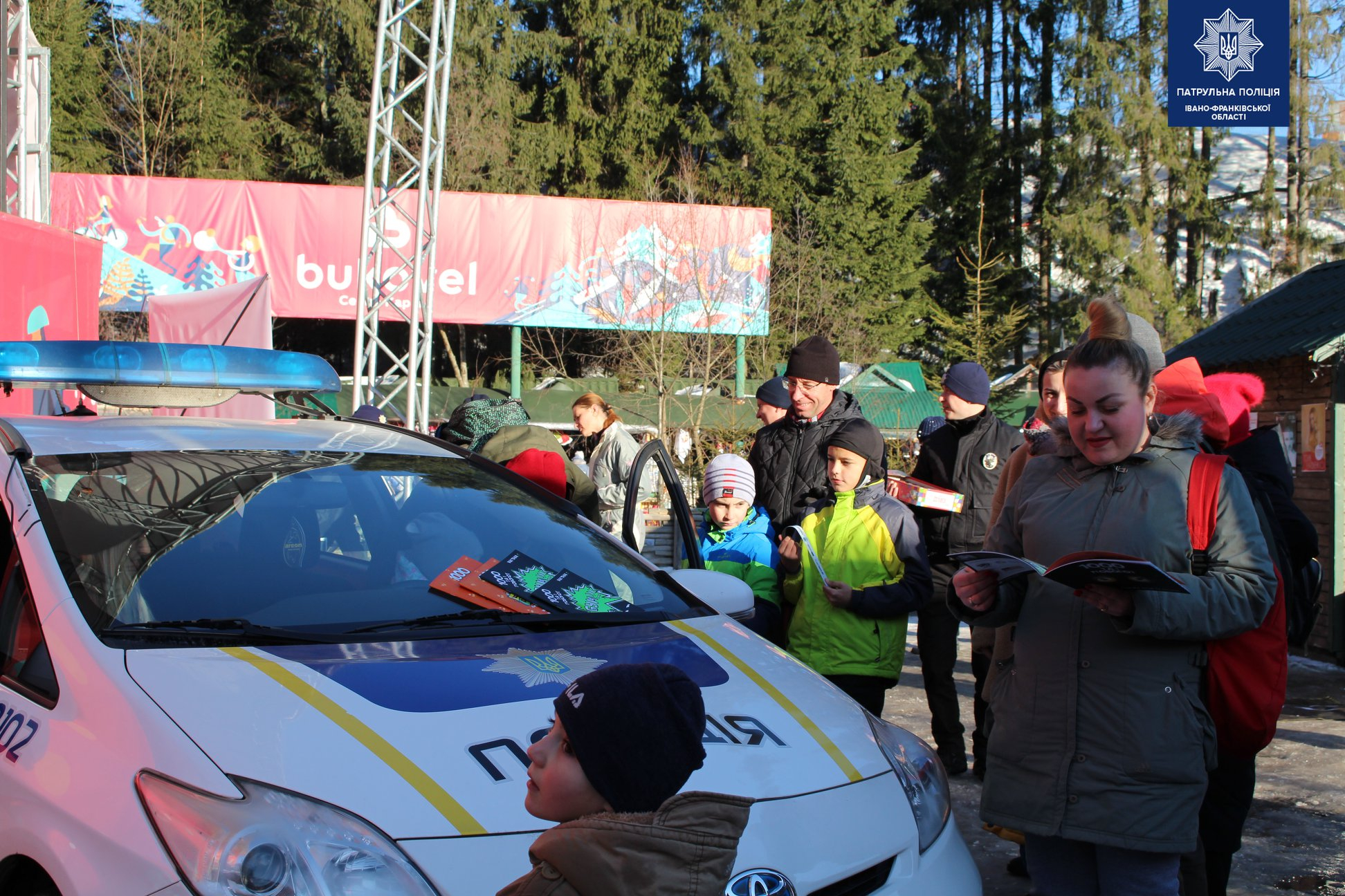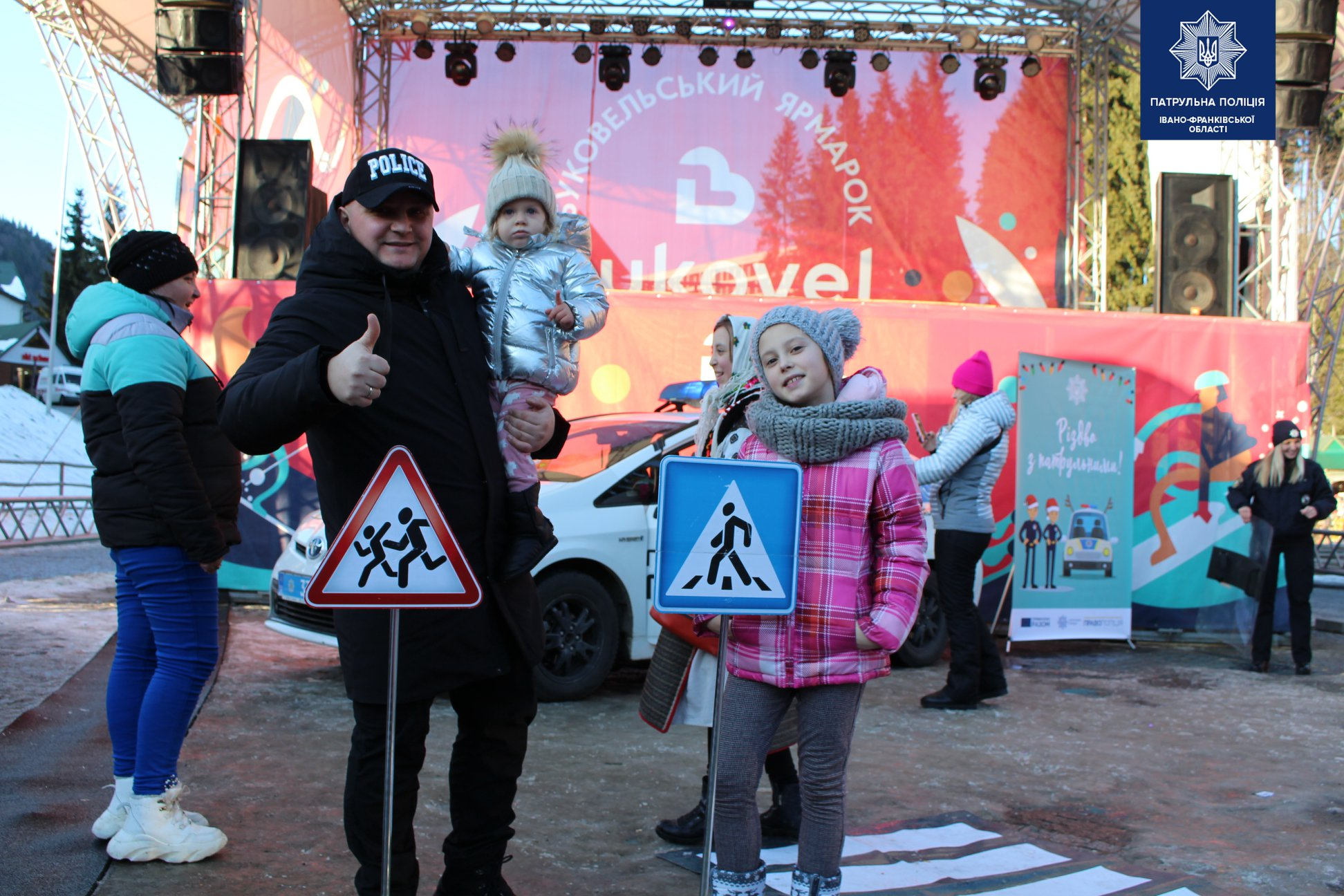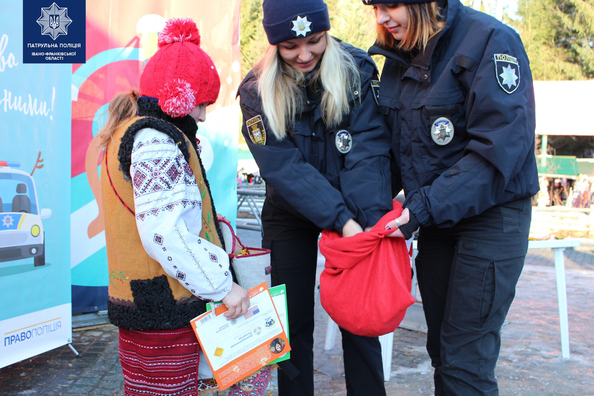 Біля центральної ялинки у селі Поляниця патрульні поліцейські влаштували для дітей та дорослих традиційну щорічну акцію "Різдво з патрульними".