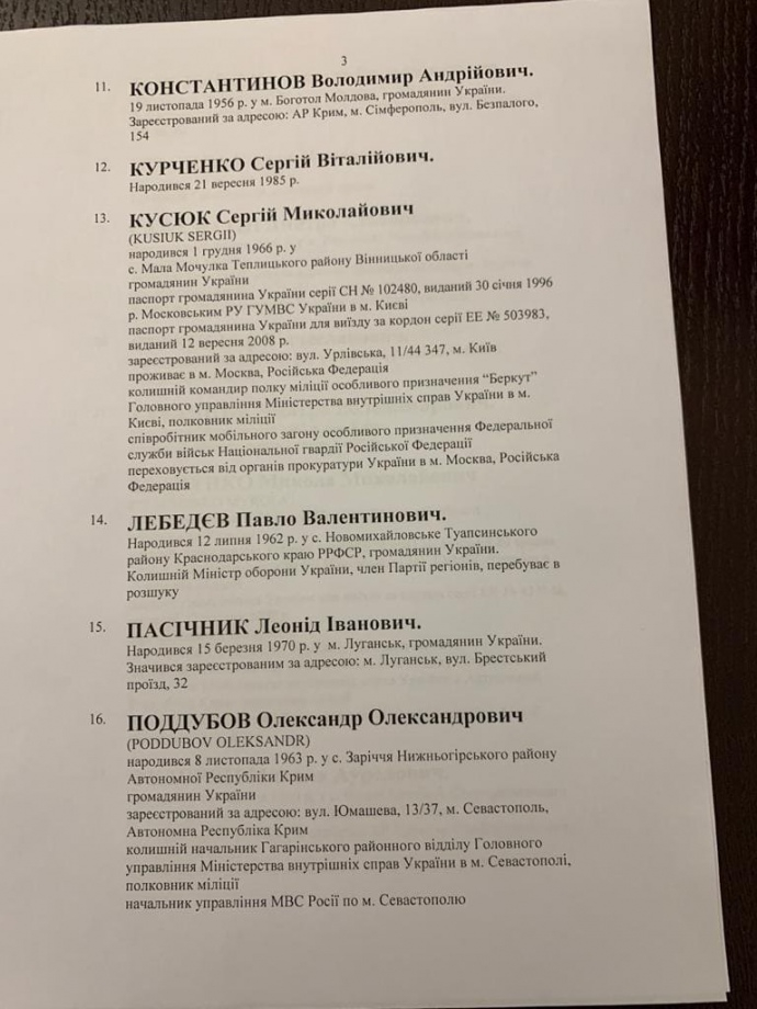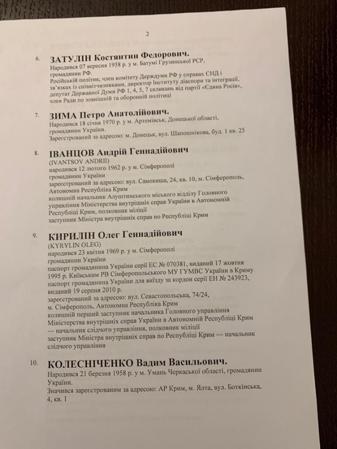 СБУ у своєму повідомленні вказало, що запропоновані для санкцій посадовці в 2014 році "сприяли спецслужбам РФ в окупації українських територій, координували злочинну діяльність силових структур, перешкоджали правам і свободам громадян, зокрема на "референдумі" в Криму".