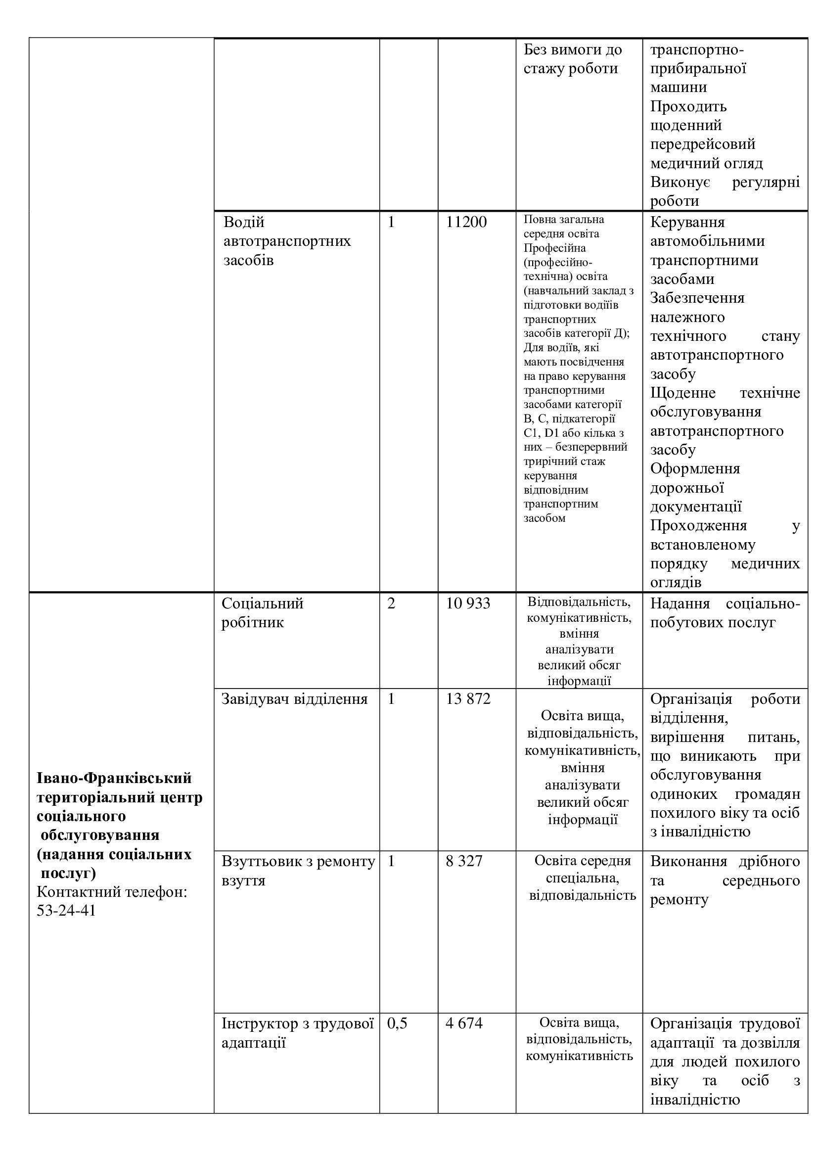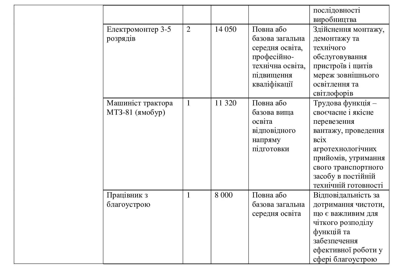 Серед вакантних посад: трактористи, робітники з благоустрою, машиністи, водії, слюсарі, соціальні працівники, бухгалтери, електрики, агрономи, двірники та інші.