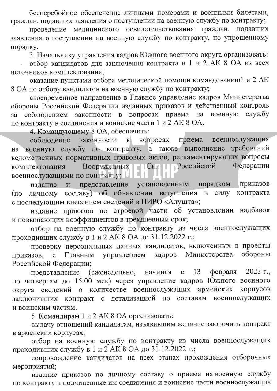 Командирам 1 та 2 АК, військовим комісарам областей наказано зробити все за спрощеною процедурою, скоротити термін відбору кандидатів до 2-х діб з моменту мобілізації до відправки до військової частини.