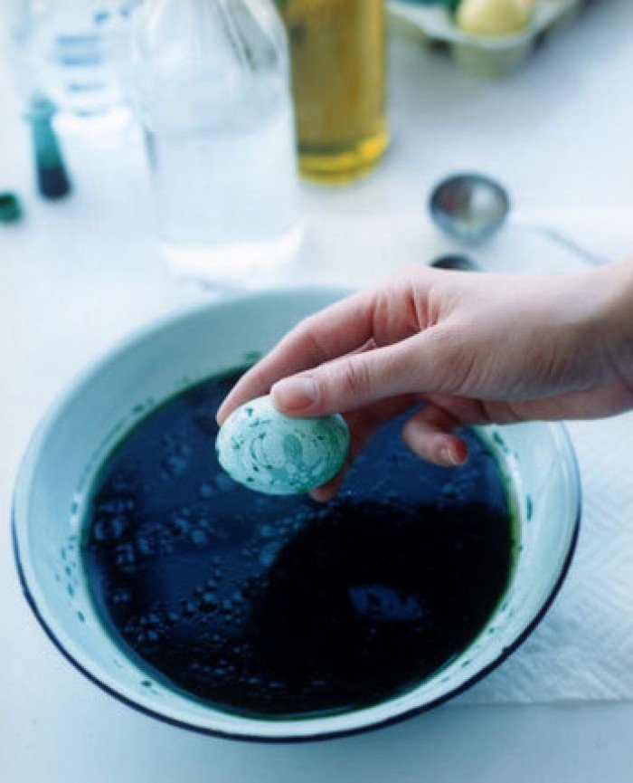 Ефект мармурових яєць дає олія, яку додають до харчового барвника під час фарбування.