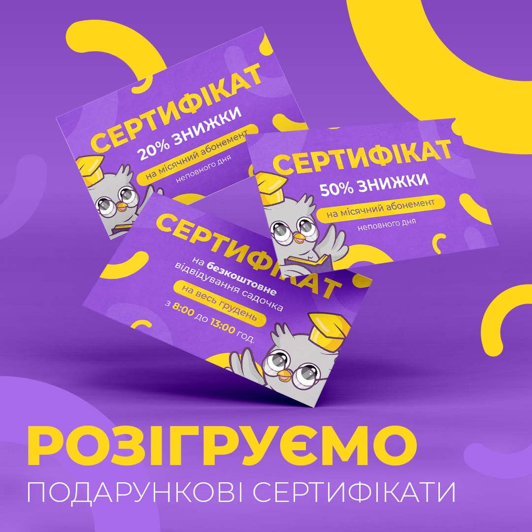 Даруємо цілих ТРИ сертифікати на відвідування нашого садочка: