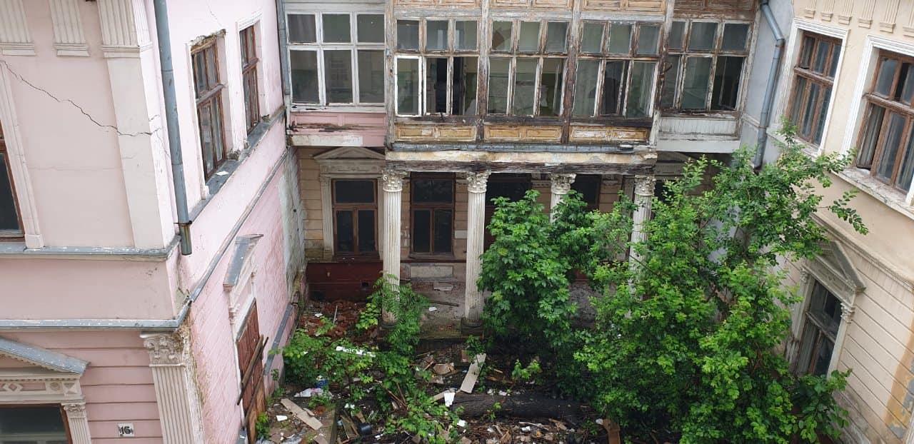 Однак, праве крило, з вулиці Крушельницької, – просто в катастрофічному стані. Аби люди менше уваги звертали на зруйнований фасад та пошкоджений фундамент, там вліпили паркан, за яким накидано купу сміття.
