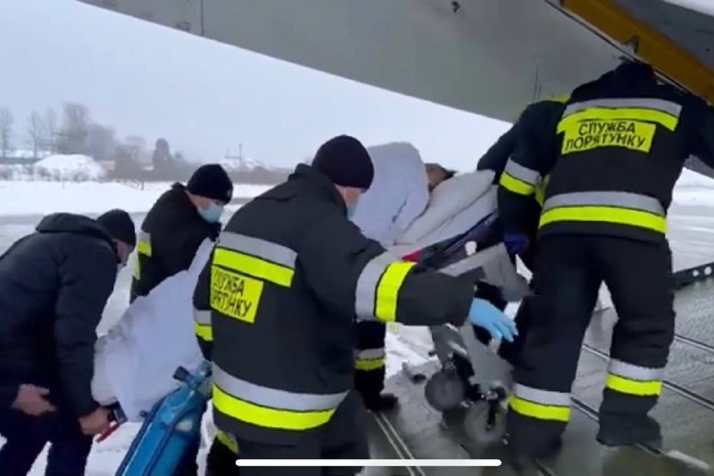 У середу, 29 грудня, о 17:37 год санітарний літак ДСНС України приземлився в аеродромі у Києві, доправивши з Івано-Франківська одну із жінок, що постраждала під час пожежі у Косівській лікарні.