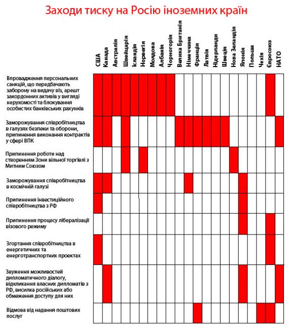Поки Захід обговорює нові засоби тиску на Кремль, нагадаємо про ті кроки, до яких він уже вдався. Велика Сімка готується до впровадження нових заходів тиску на Росію з огляду на те, що агресія проти України триває.