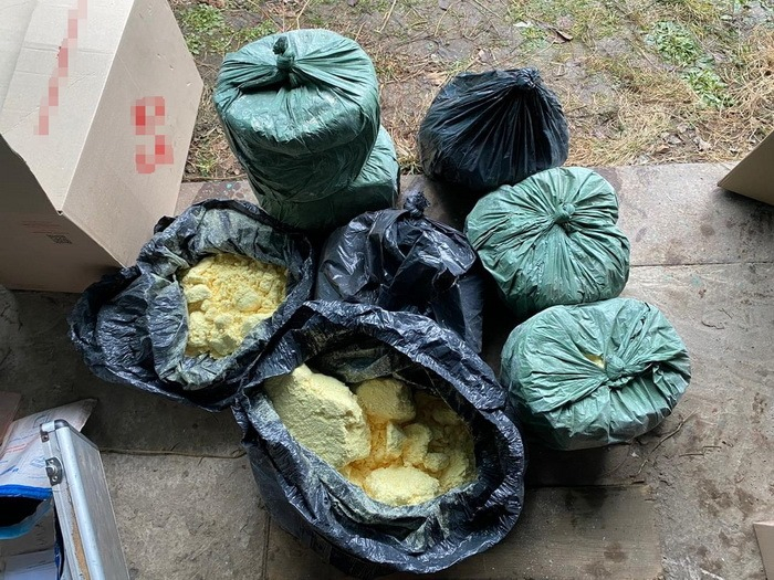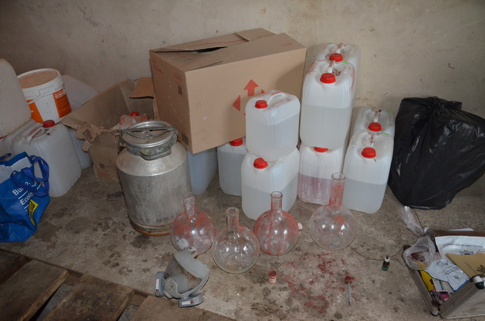 Під час обшуків у нарколабораторії правоохоронці вилучили 85 кілограмів прекурсору фенілнітропропен, якого достатньо для виготовлення амфетаміну на суму майже 15 мільйонів гривень. Крім того вилучено майже 45 кілограмів марихуани, два пістолети-автомати «Скорпіон», два пістолети «Макарова» та «Браунінг», лабораторне обладнання.