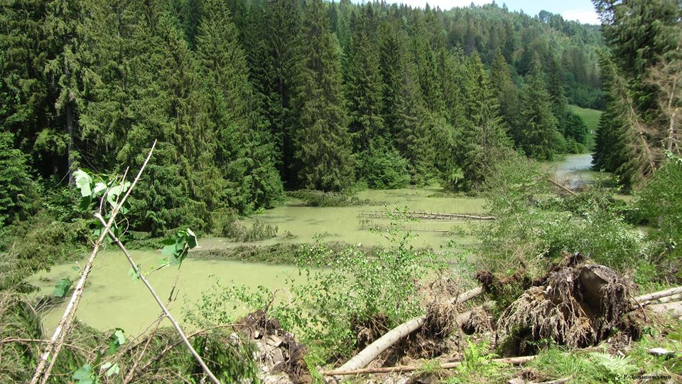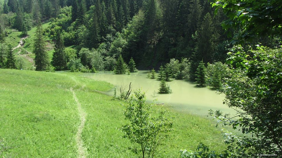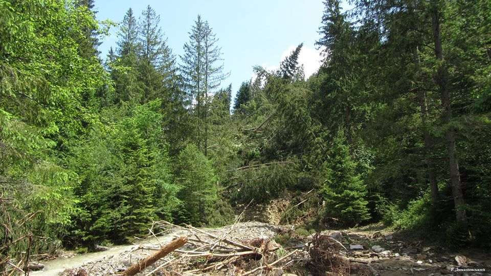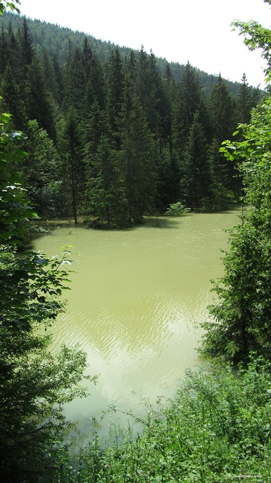"В Микуличині на річці Мерисний зі схилу гори Кичера стався зсув і утворилося озеро. Фото 25 червня 2020 року", - повідомив мешканець Микуличина Роман Домашевський.
