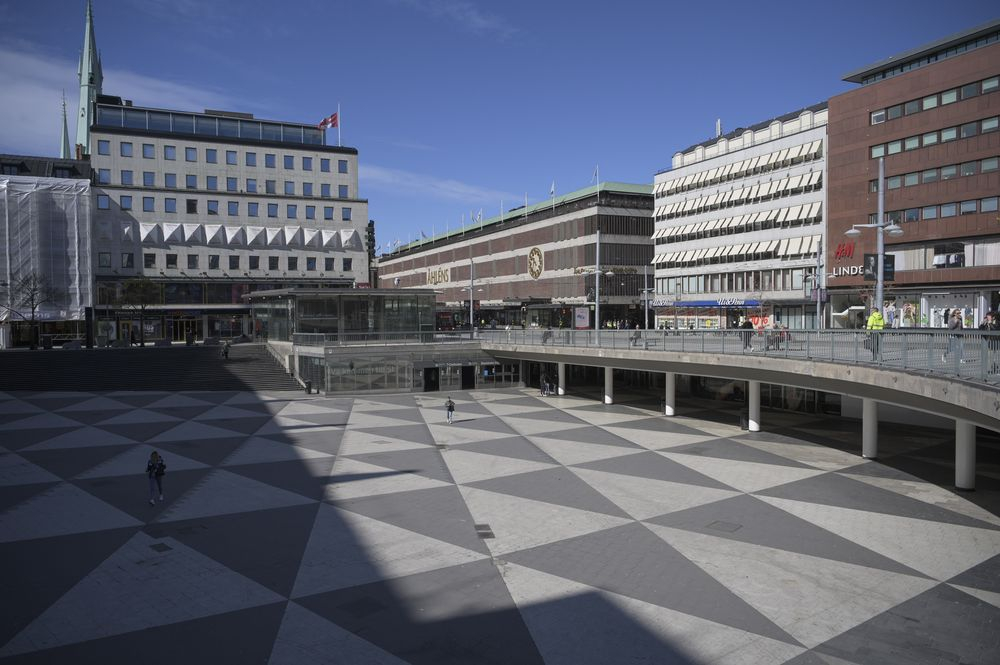Пішоходи проходять тиху площу "Серджелс торг" у Стокгольмі, 23 квітня. Фотограф: Мікаель Шоберг / Блумберг