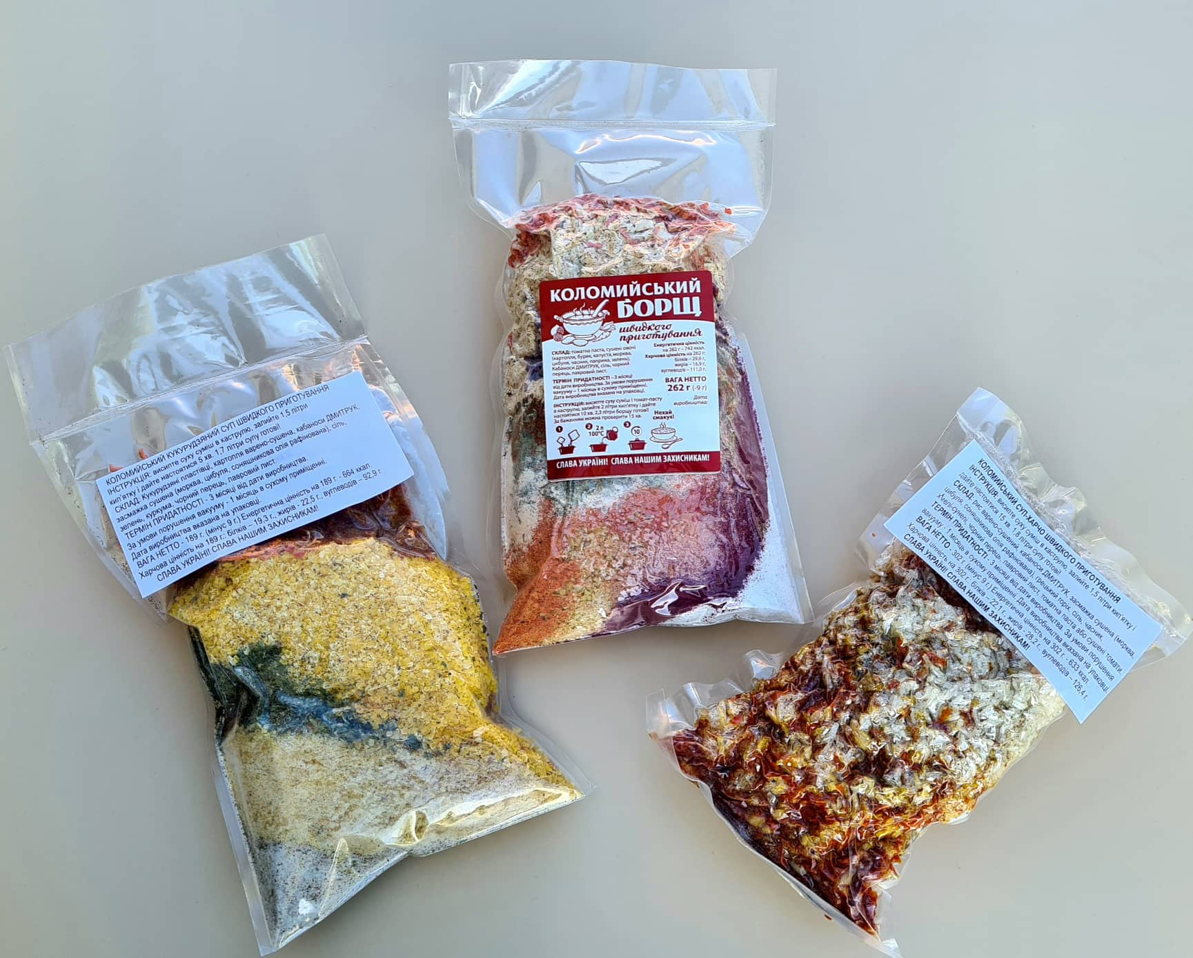 «Я пригадала, що мої друзі з 2014 року готують сухий борщ для бійців, але його потрібно варити. Цю ідею ми підхопили, але трішки вдосконалили, знайшли рецепт і вирішили готувати «Коломийський борщ» для захисників, який можна варити, а також й запарювати 10 хвилин», - розповідає засновниця Анна.