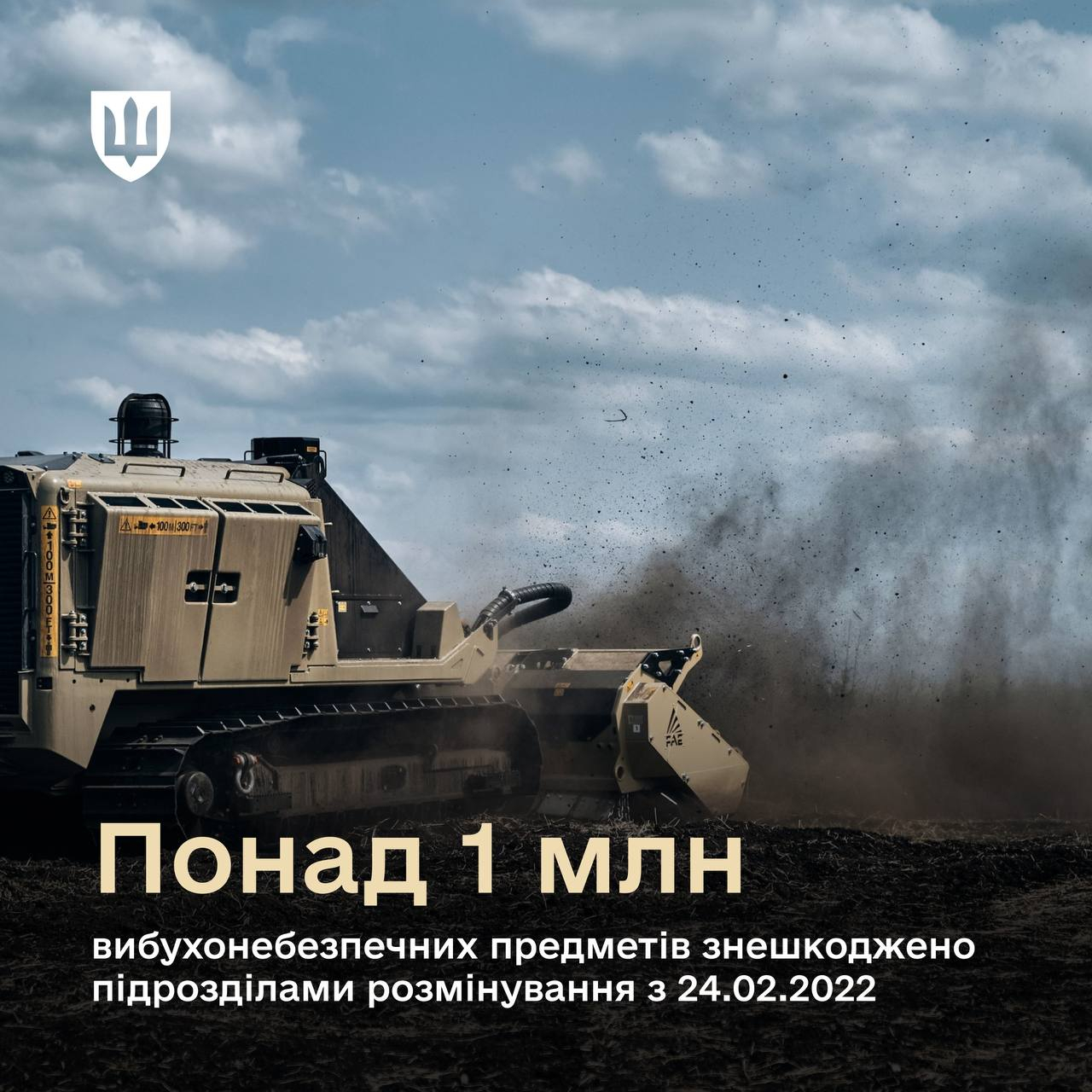 Понад один мільйон вибухонебезпечних предметів уже знешкодили підрозділи розмінування Сил безпеки й оборони від початку повномасштабної війни.