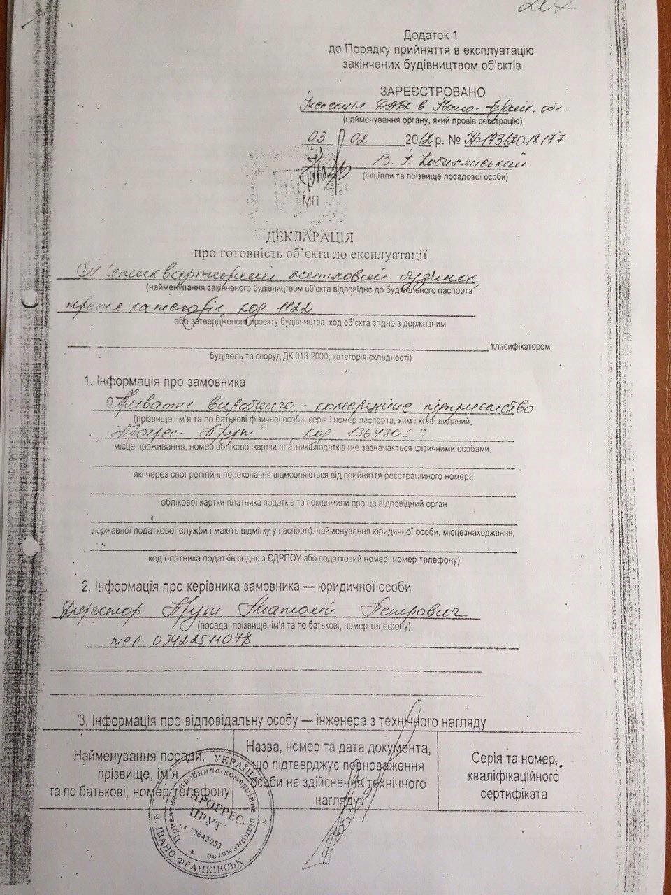 За їх словами, Анатолій Прут будував раніше будинок за адресою Мазепи, 35А і "здав його в експлуатацію за реквізитами фірми, якої на той час вже не існувало, скріпивши їх недійсною печаткою".