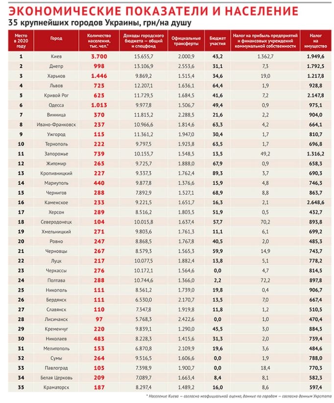 Джерелом інформації стали вже прийняті місцевими радами міські бюджети на 2020 рік, які розглядалися в розрахунку на душу населення.