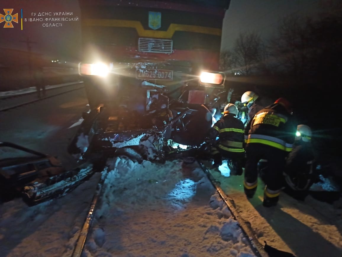 Як зазначається, у селі Клузів ввечері 13 грудня відбулось зіткнення автомобіля "ВАЗ" та пасажирського потяга. Прибулим на місце рятувальникам довелося деблокувати тіла людей з понівеченого внаслідок удару локомотива салону автівки.