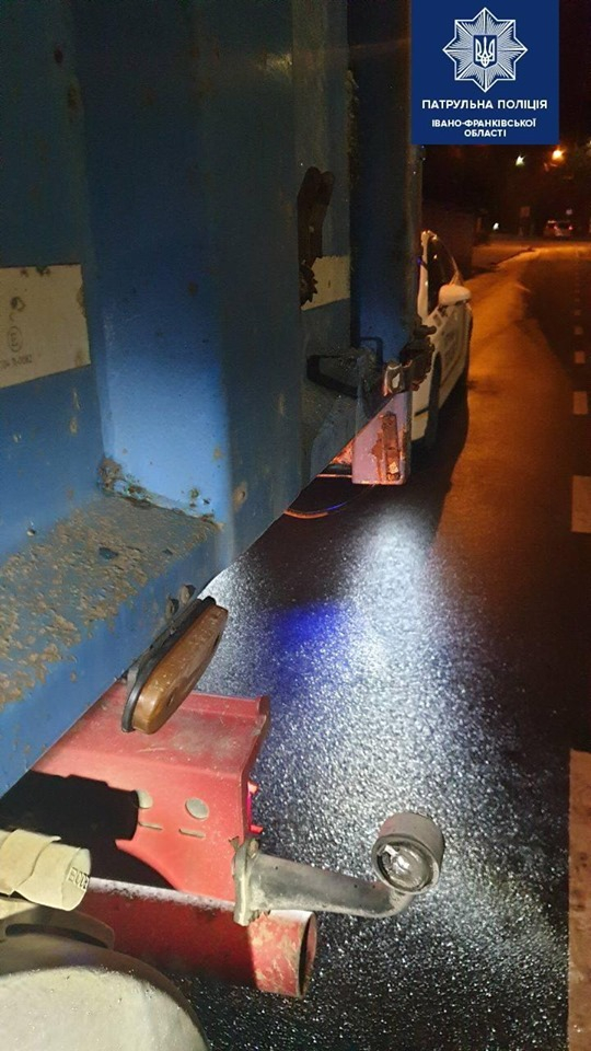 Поліція оголосила план «Перехват». Уже через півтори години, працівники патрульної поліції області по орієнтуванню зупинили водія вантажівки по вул. Василіянок, що в Івано-Франківську. Як з`ясували слідчі, за кермом фури перебував 60-річний мешканець Тернополя. Водій тверезий.