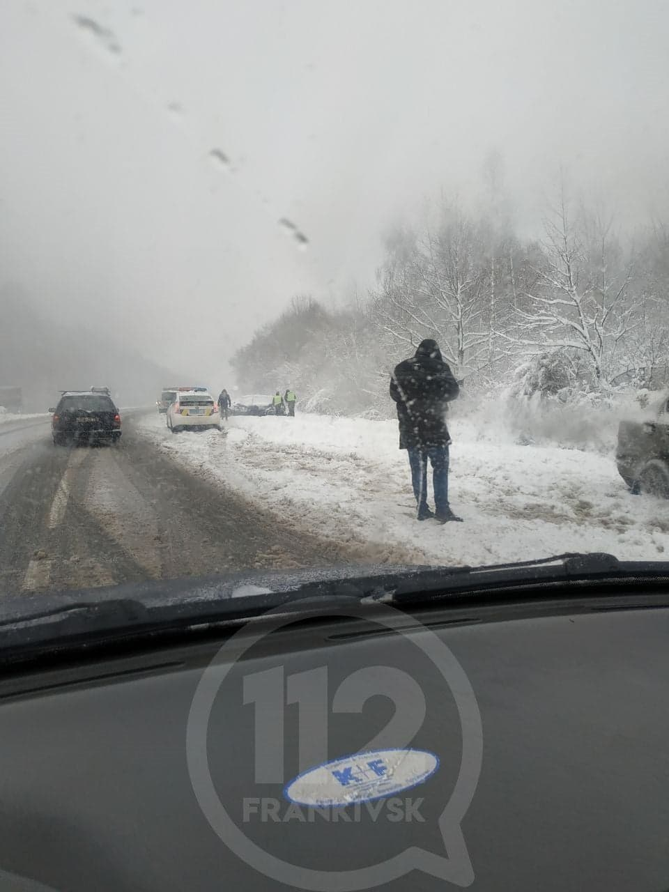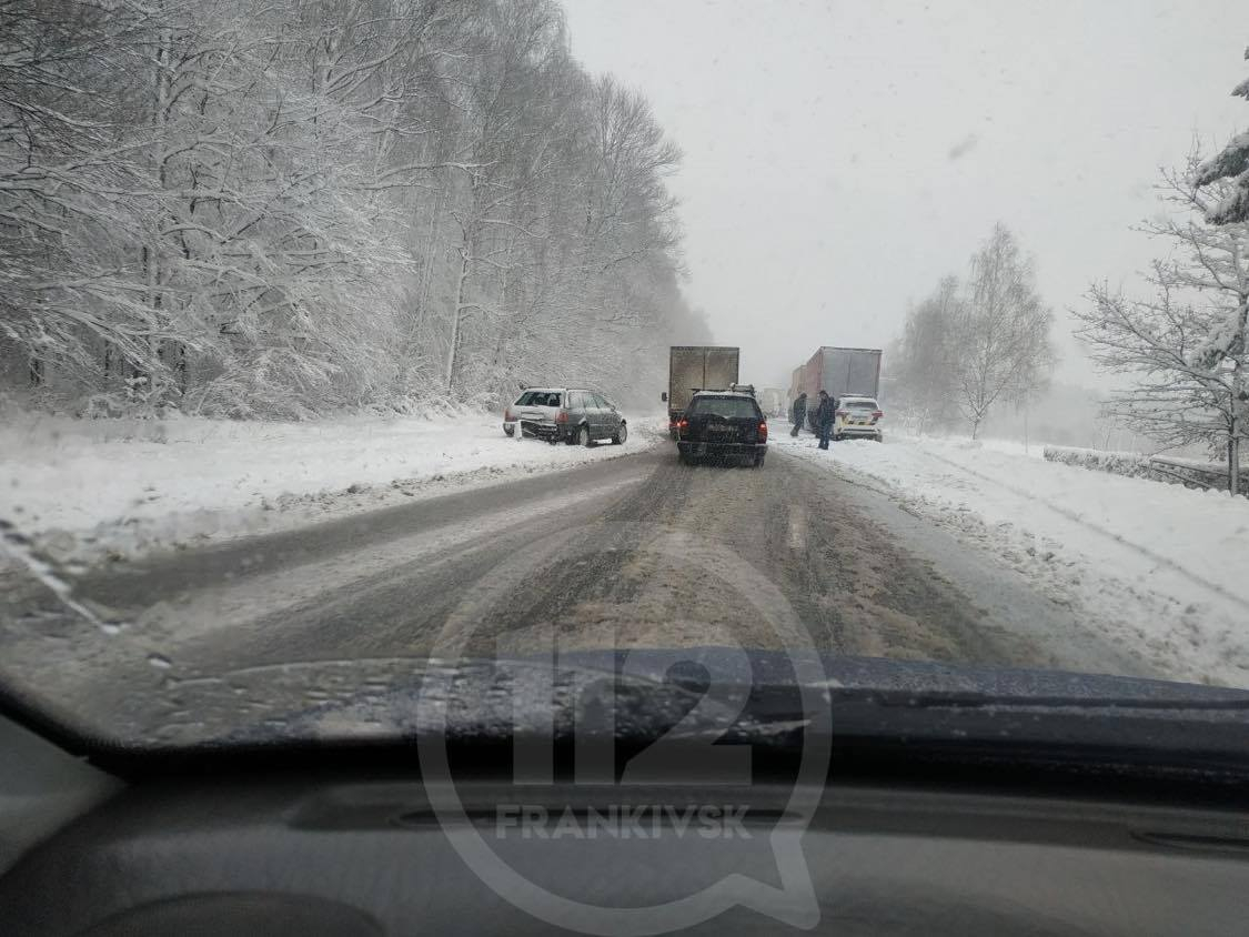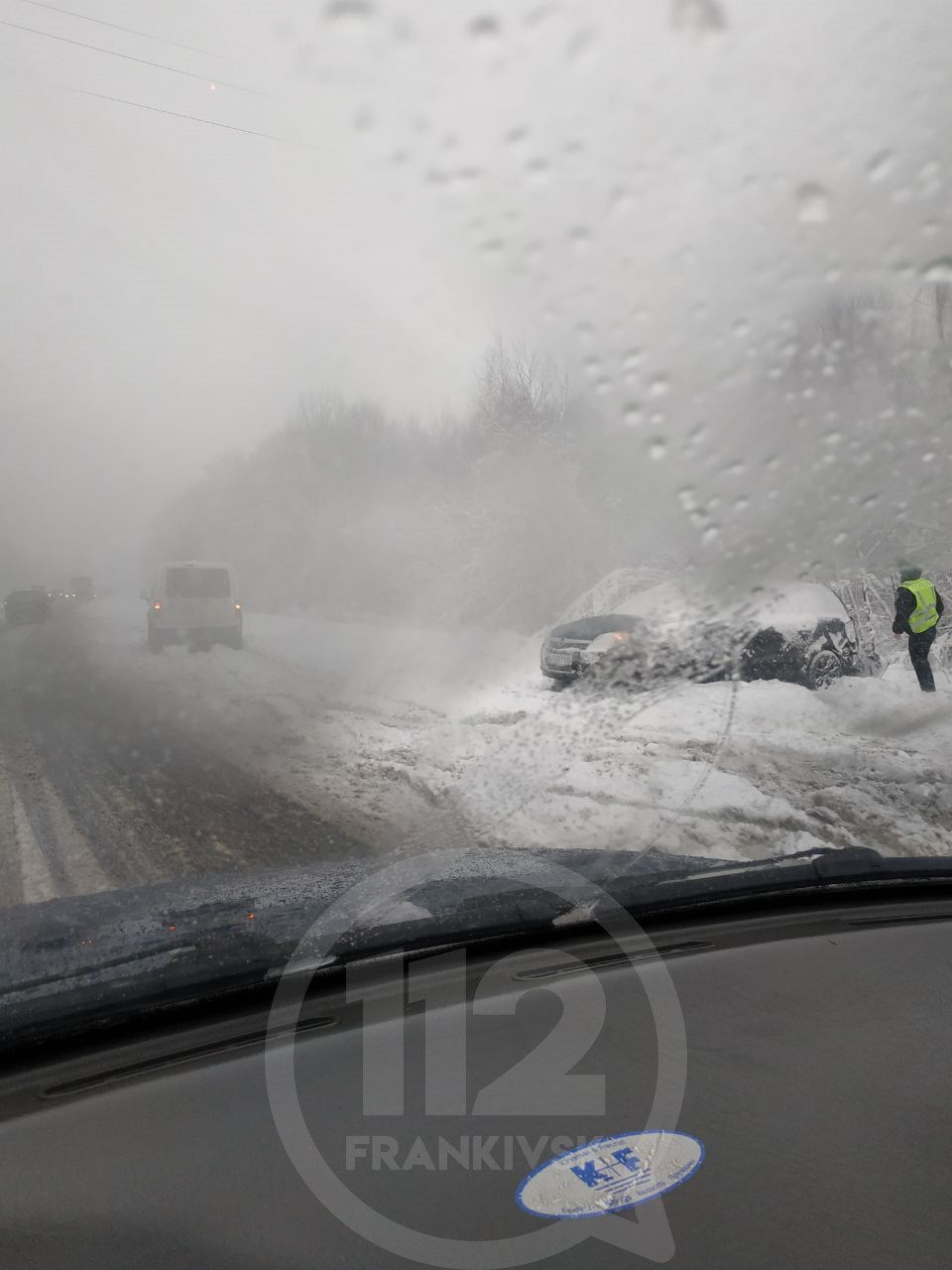 Сніг та ожеледиця: на Прикарпатті автомобілі злітають з дороги (ФОТО)