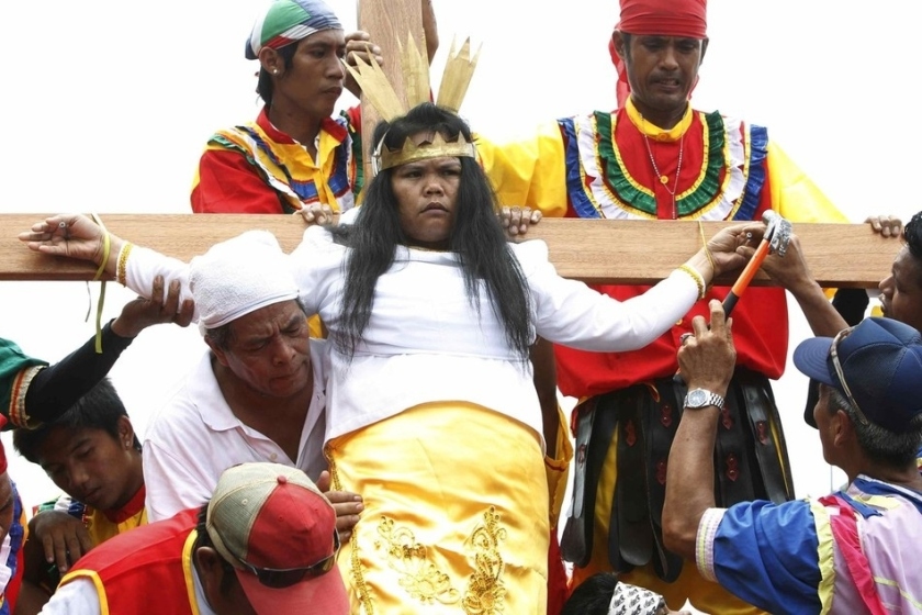 Ось таку картину можна побачити щорічно в Страсну п'ятницю перед католицьким Великоднем в декількох десятках кілометрах від сучасної столиці Філіппін Маніли, в містечку Сан-Фернандо.