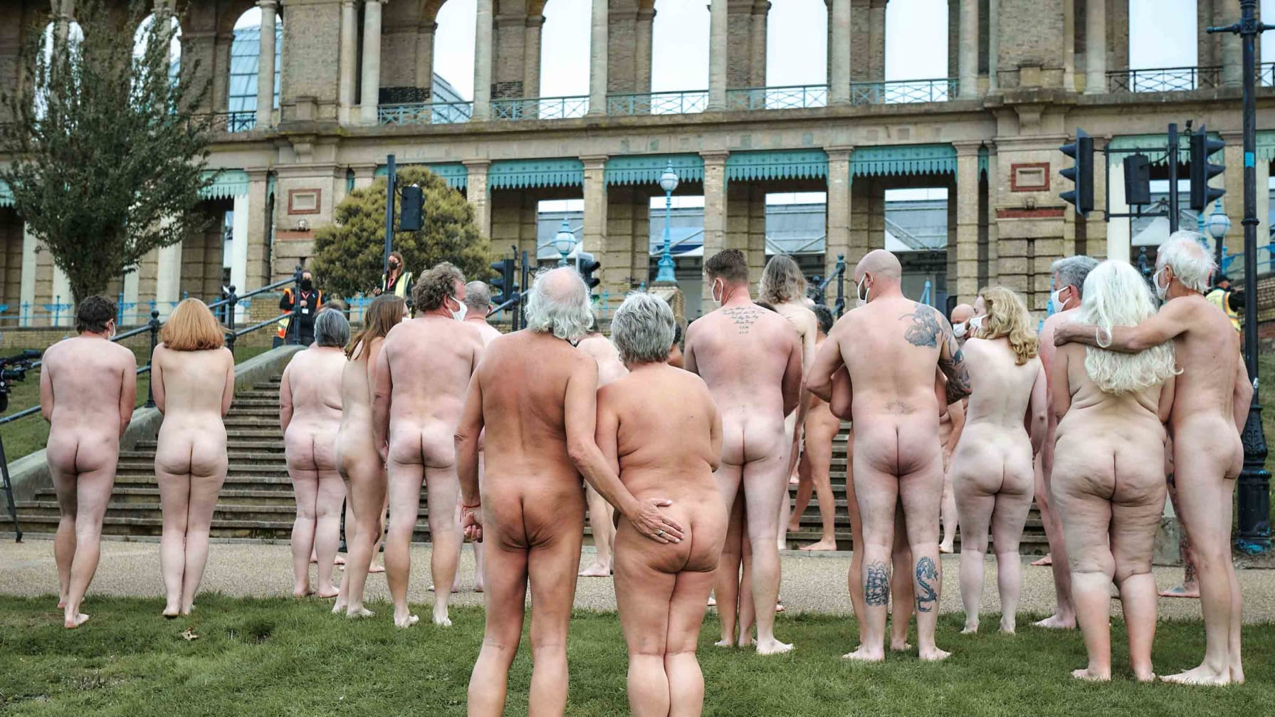 Близько 220 людей позували оголеними, маючи тільки маски на обличчі, на думку організаторів, це перший великий мистецький захід, що відбувся після карантинної ізоляції. Спенсер Тунік/Sky Arts