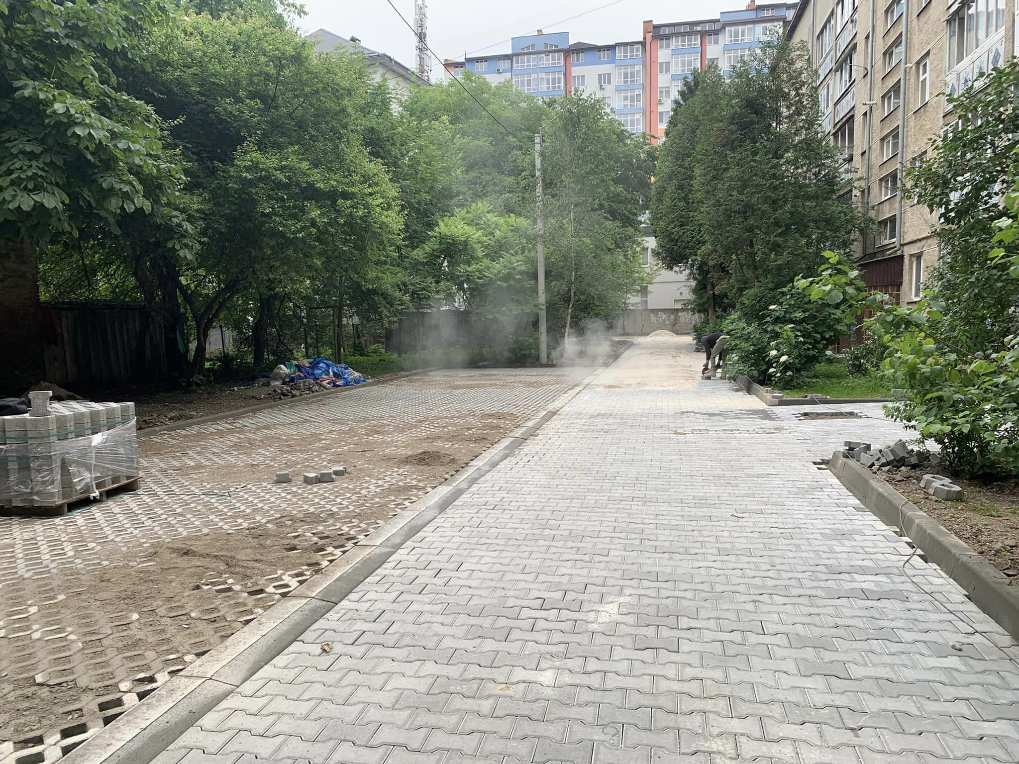 Також роботи робляться й на Набережній 22, а саме облаштовують заїзди.