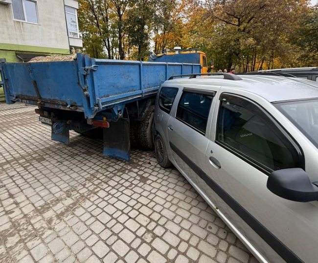 Спричинив аварію через самовільний рух. В Івано-Франківську КамАЗ пошкодив три автомобілі (ФОТОФАКТ)