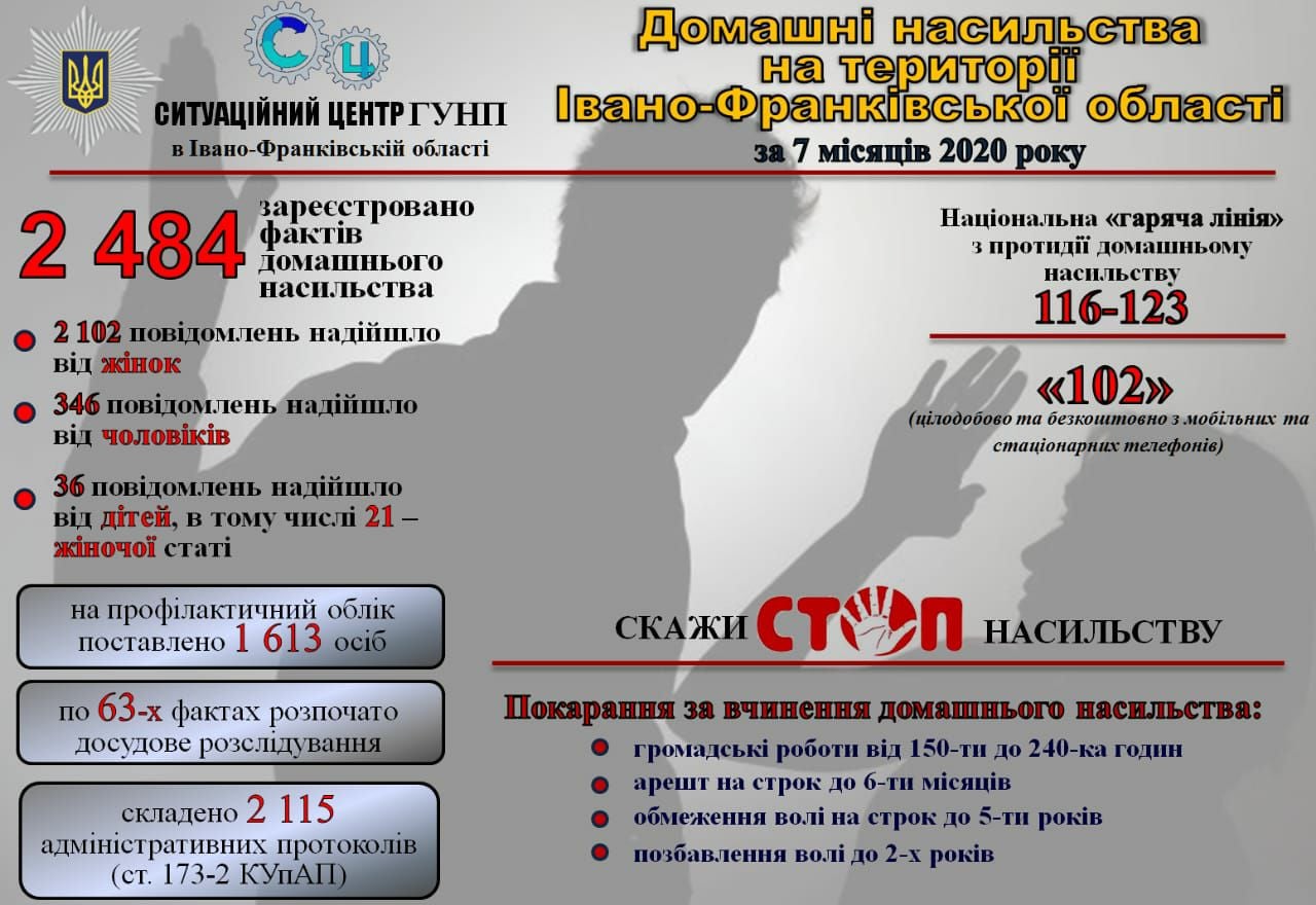 За сім місяців 2020 року у поліції Івано-Франківщини зареєстровано 2 484 факти домашнього насильства.