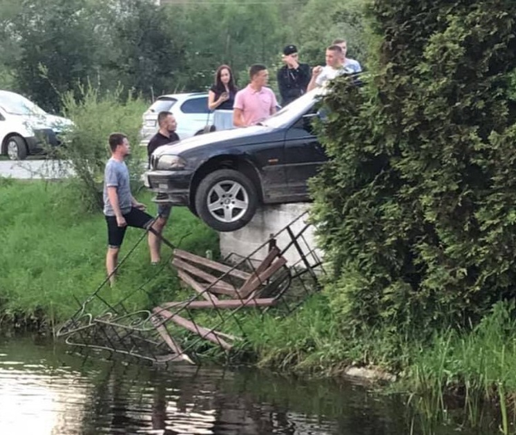 Як повідомляла Фіртка, у Калуші автомобіль зніс лавку і завис над озером.