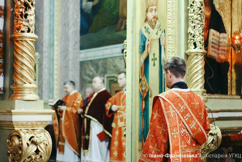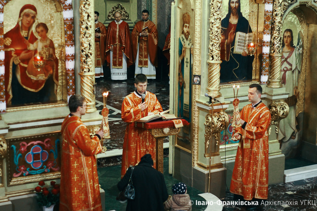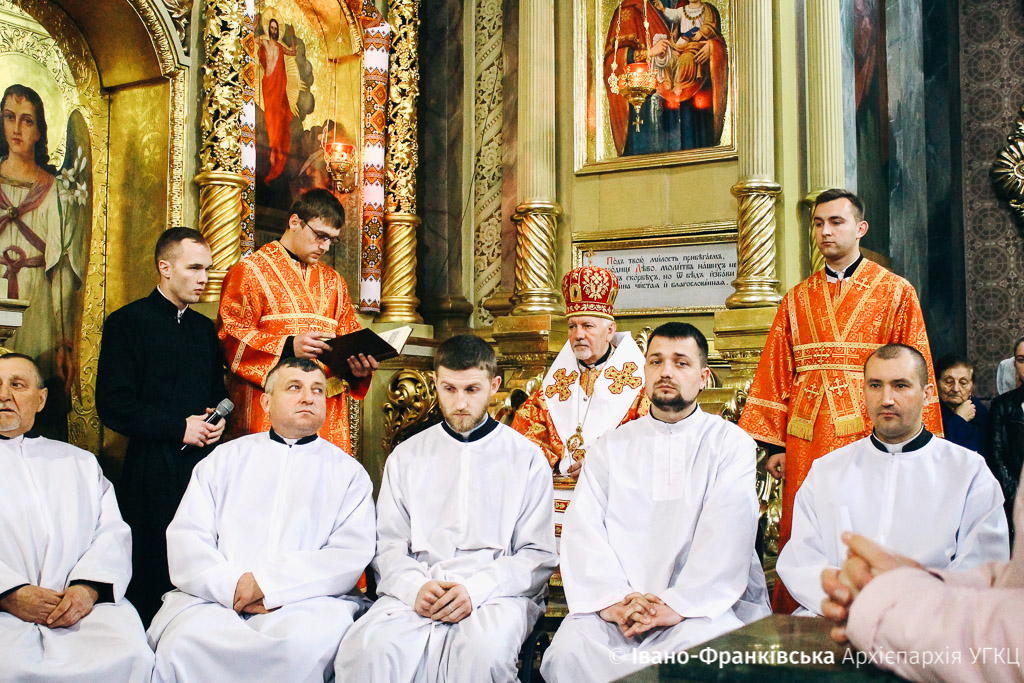 Сьогодні, 25 квітня, у Страсний четвер в Архікатедральному соборі Воскресіння Христового Митрополит Володимир Війтишин очолив Вечірню з Літургією Василія Великого та здійснив Чин обмивання ніг дванадцятьом священикам Івано-Франківської Архієпархії.