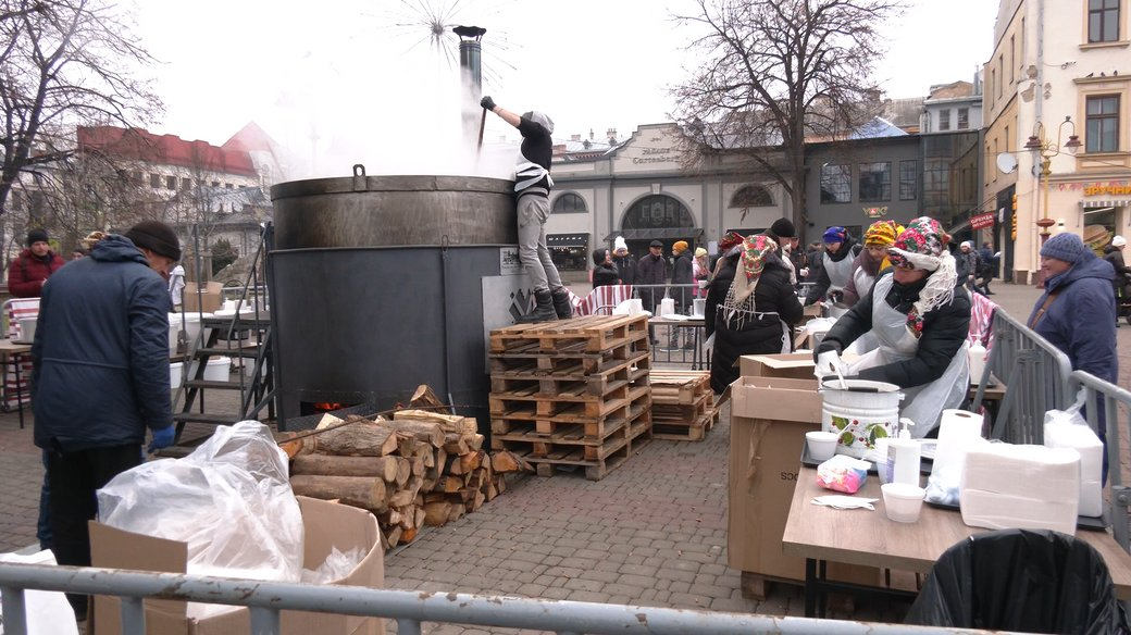 В Івано-Франківську восьмого січня працівники локомотиворемонтного заводу та приватні підприємці зварили дві тонни куті та пригостили нею охочих.
