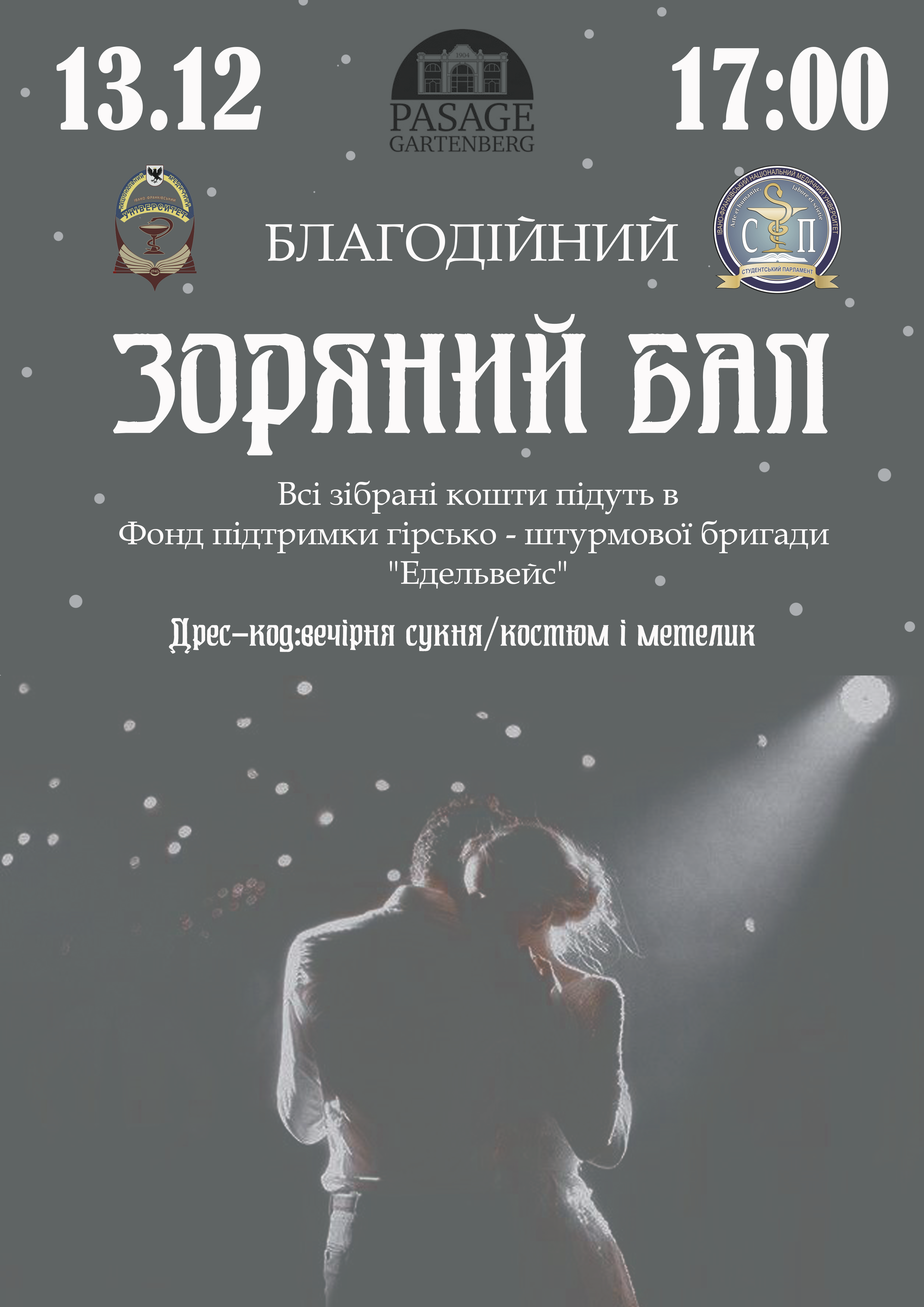 Студентський парламент Івано-Франківського національного медичного університету організовує благодійний зоряний бал, який відбудеться 13 грудня у «Пасаж Гартенберг».