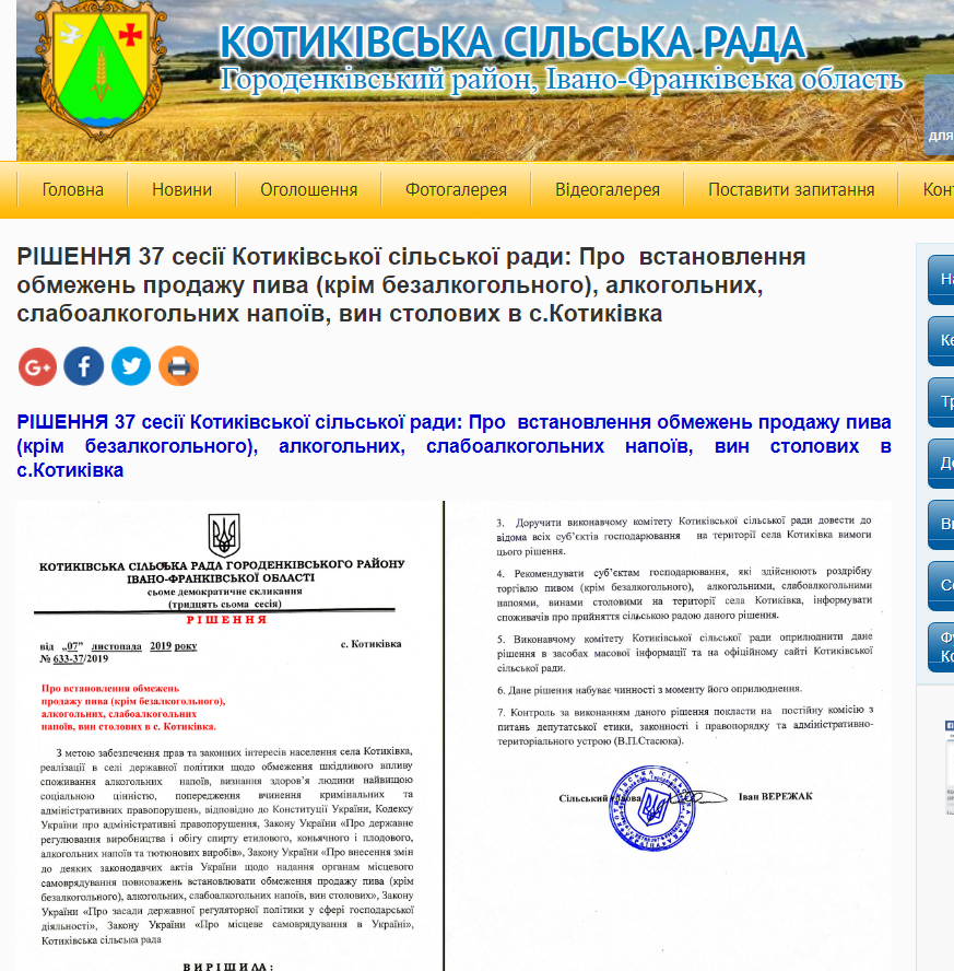 В селі Котиківка на Городенківщині відтепер не продаватимуть алкоголь з 22 години вечора до 9 години ранку.