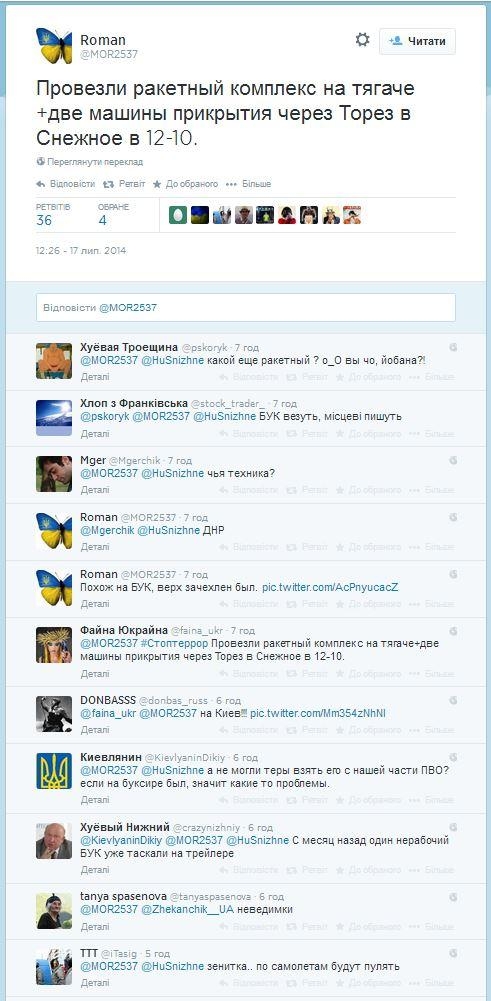 Також стало відомо про те, що перші ствердження терористів із „днр” про те, що у них немає такого військового озброєння, щоб збивати літаки на такій висоті, є повністю брехливими.