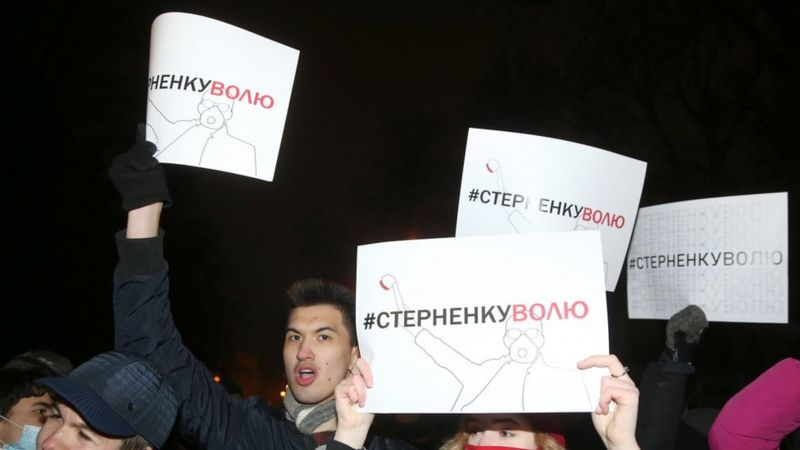 У Києві у вівторок ввечері біля Офісу президента пройшла масова акція протесту на підтримку одеського активіста Сергія Стерненка. Вчора вранці суд засудив його на понад сім років ув'язнення.