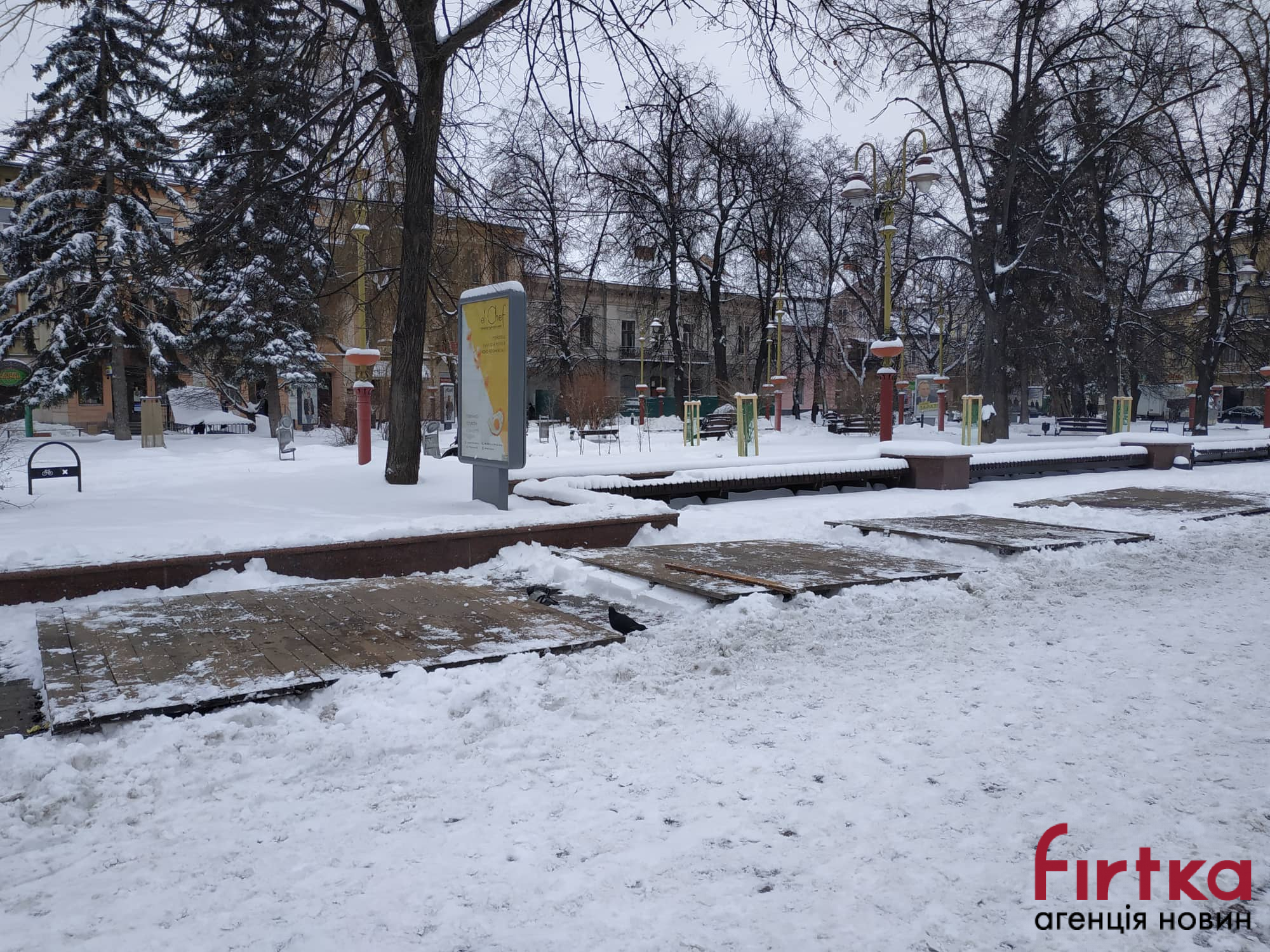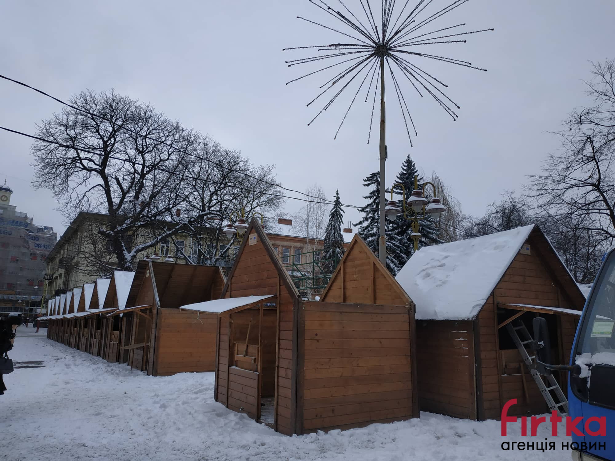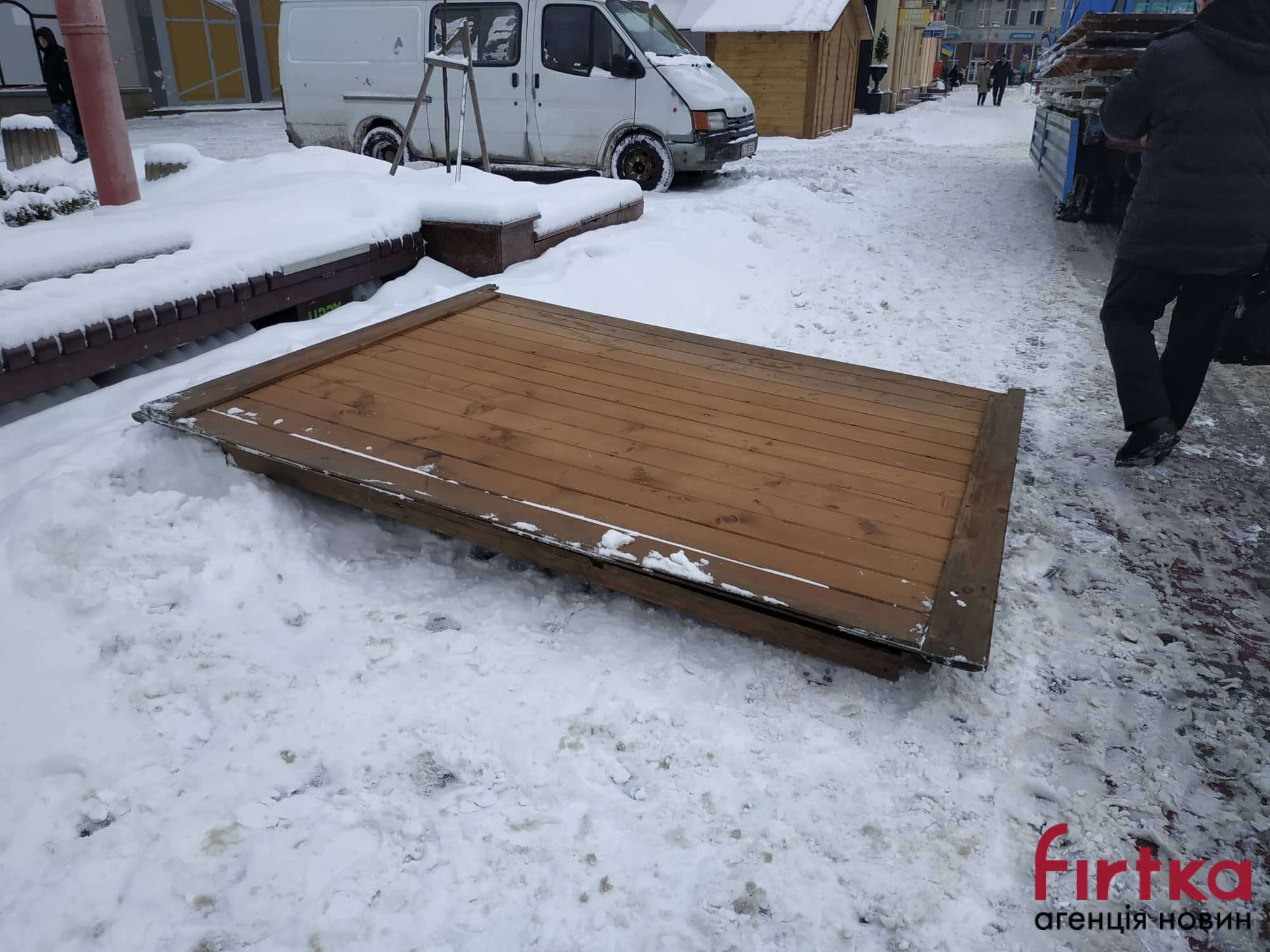 У Франківську на Вічевому майдані проводять демонтаж дерев’яних ярмаркових будиночків.