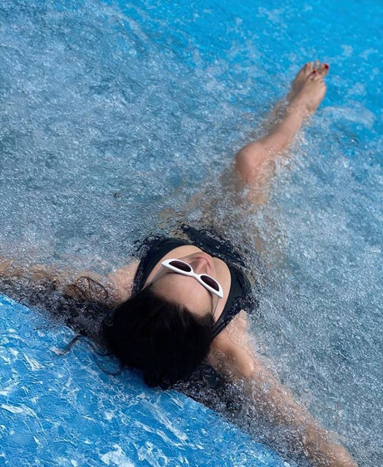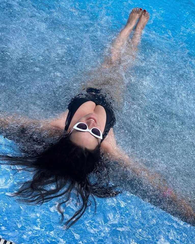 Вона опублікувала в Instagram кілька знімків з басейну. Плаває Соломія в чорному суцільному купальнику і сонцезахисних окулярах в білій оправі.