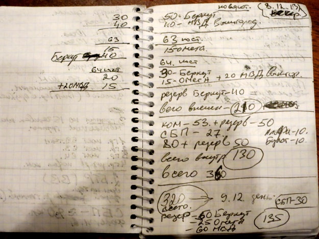 На лівій сторінці охоронець Януковича ретельно перераховує людей - очевидно, це формується пул для святкування з Януковичем Нового року або Різдва.