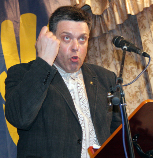 У звичному для себе стилі головний «свободівець» розповів присутнім як правильно розставити акценти на найближчих парламентських виборах, над чим зараз працює Комітет опору диктатурі (однією із ключових партій якого є «Свобода»), закликав не куплятися на обіцянки псевдополітиків, а також не вірити інформаційним повідомленням, які направлені на дискредитацію його політичної сили. Й порекомендував громадянам налаштовуватися не тільки на мирне завершення виборчої кампанії. Не обійшов стороною й гріхів чинної влади, а також зовнішньополітичної кон'юктури.