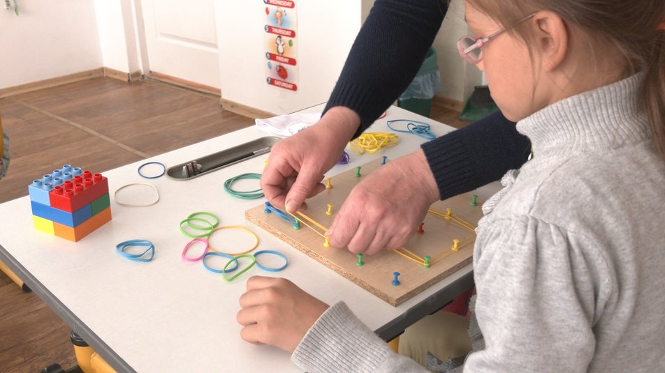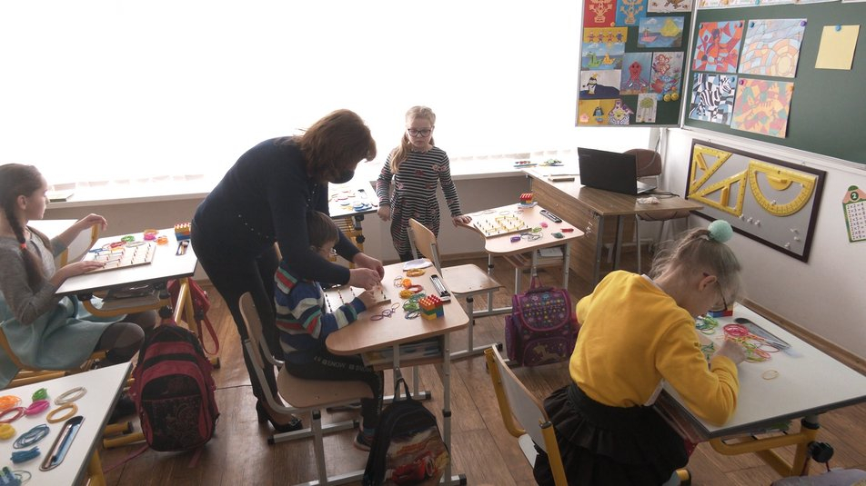 "У дітей у робочому навчальному плані, окрім інваріантної складової предметів, які вивчають і у звичайній школі, є ще корекційно-розвиткові предмети. Зокрема, лікувальна фізкультура, корекція розвитку, соціально-побутове орієнтування, розвиток мовлення, – розповідає директорка Вигодської спеціальної школи Оксана Якимів. – Тобто ті спеціальні предмети, які спрямовані на розвиток тактильних і інших відчуттів слабозорої дитини".