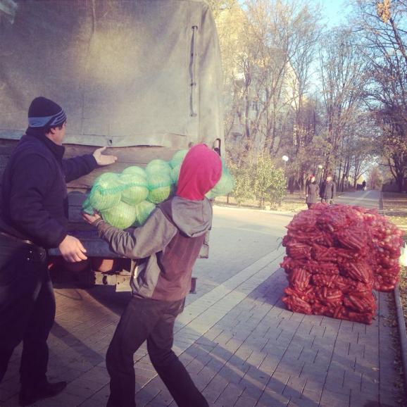 Біля виборчих дільниць на так званих «виборах» в ДНР продають овочі по 1 гривні за мішок, а всіх, хто проголосував - частують пиріжками.