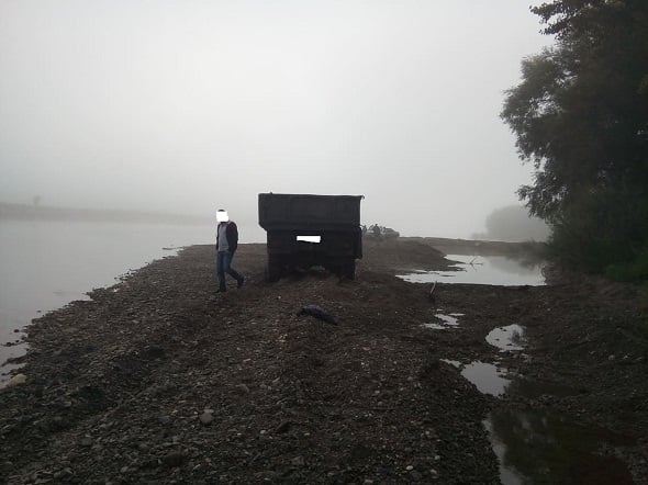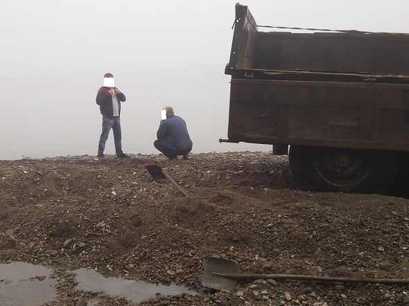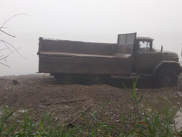 Попри численні вимоги зупинитися, водій увімкнув гідравлічний розвантажувач кузова і розпочав рух машини вперед, здійснюючи спробу наїзду на державного інспектора та висипаючи з кузова на берег піщано-гравійну суміш.