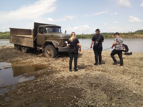 Там виявили вантажівку марки «ЗІЛ-131», на кузов якої група осіб у складі трьох вантажників з лопатами та одного водія здійснювали незаконний забір піщано-гравійної суміші, пише Фіртка з посиланням на Івано-Франківський рибоохоронний патруль.