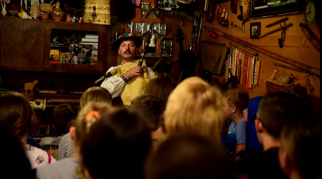 Потім ми заходимо до хати, я розповідаю про гуцула – чим жив і чим займається до цього дня. Потім про особливості домашніх робіт жінки-гуцулки, і так доходимо до одягу. І третя – музична частина. Граю на усіх інструментах, які побутували на Гуцульщині і є по сьогоднішній день.