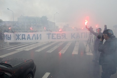 Коли машина з Анатолієм від'їжджала з паркінгу перед будівлею аеропорт, кілька людей вишикувалися вздовж дороги з фаєрами. Водій зупинився перед банером, розгорнутим поперек дороги: "Ми чекали на тебе, Капітане!".