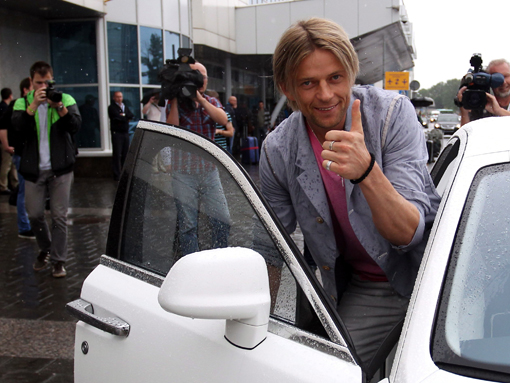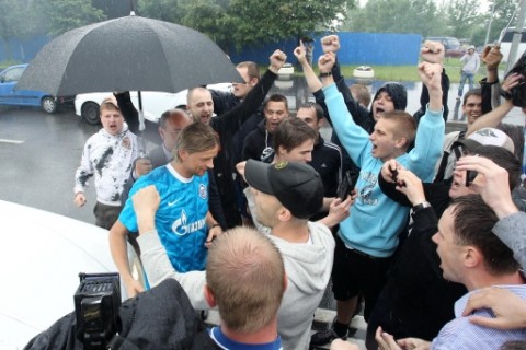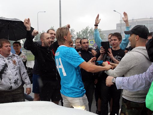 Розчулений Тимощук вийшов із машини, після чого відразу отримав із рук фанатів зенітівську футболку з 44-м номером і капітанську пов'язку (з цими атрибутами Анатолій вигравав Кубок УЄФА).