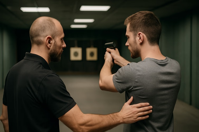 Для початківців навчання починається з пояснення правил поводження зі зброєю, постановки тіла та базових принципів прицілювання. Основи стрілецької підготовки охоплюють правильний хват пістолета, роботу з диханням і координацію рухів. Ці навички формують фундамент, на якому будується подальший розвиток.