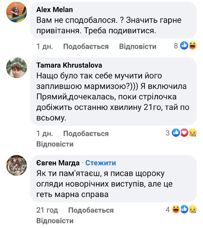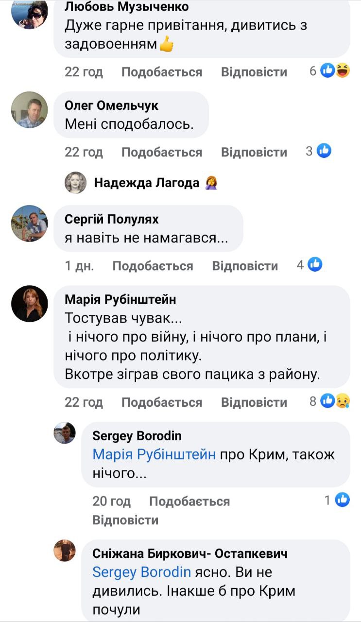 «Не знаю, на кого були розраховані ті 20 хвилин президентської промови (хоч за програмою мали бути десять, тому на усіх каналах перервали програми і фільми).