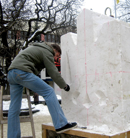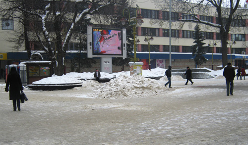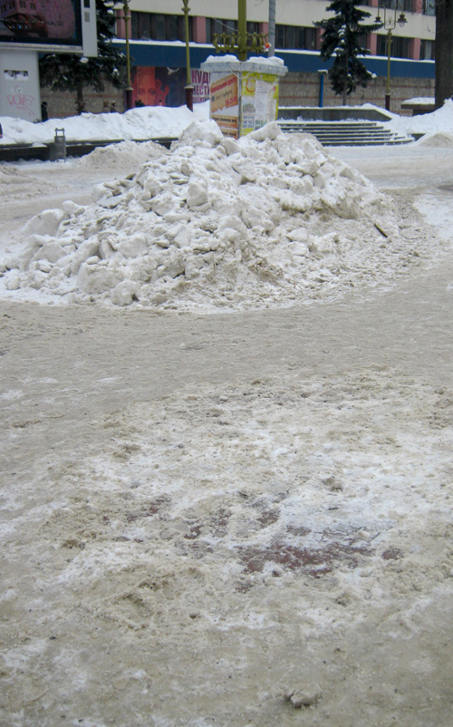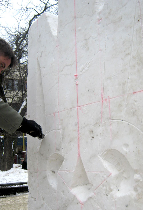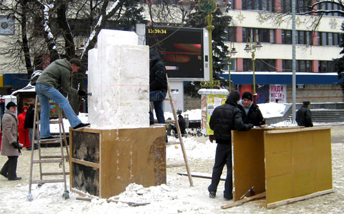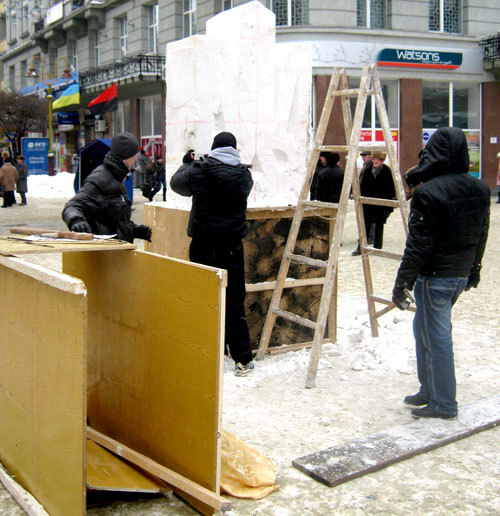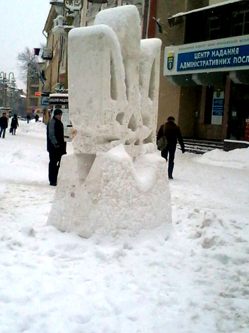 15 лютого, в центрі Івано-Франківська, на Вічевому Майдані місцеві громадські активісти презентували великий тризуб із снігу. Автори скульптури сподівалися, що герб зі снігу простоїть на центральній площі Івано-Франківська до березня. Проте великий тризуб не прожив і тижня - вчора скульптура була розвалена, а сьогодні її прибрали комунальники.