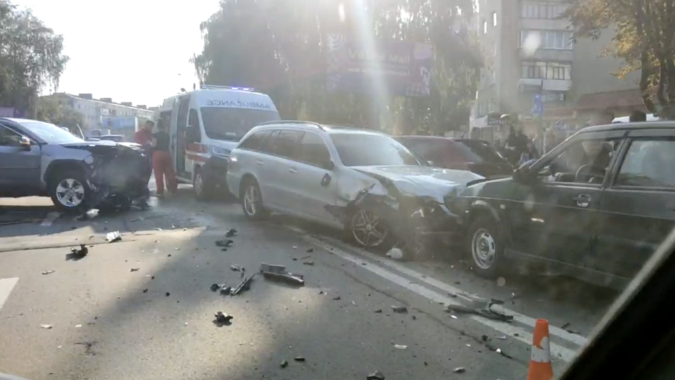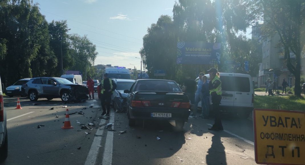 Внаслідок цього Mercedes викинуло на зустрічну смугу руху, де зіткнулись автівки ВАЗ, Skoda Fabia, Ford та ще один ВАЗ.